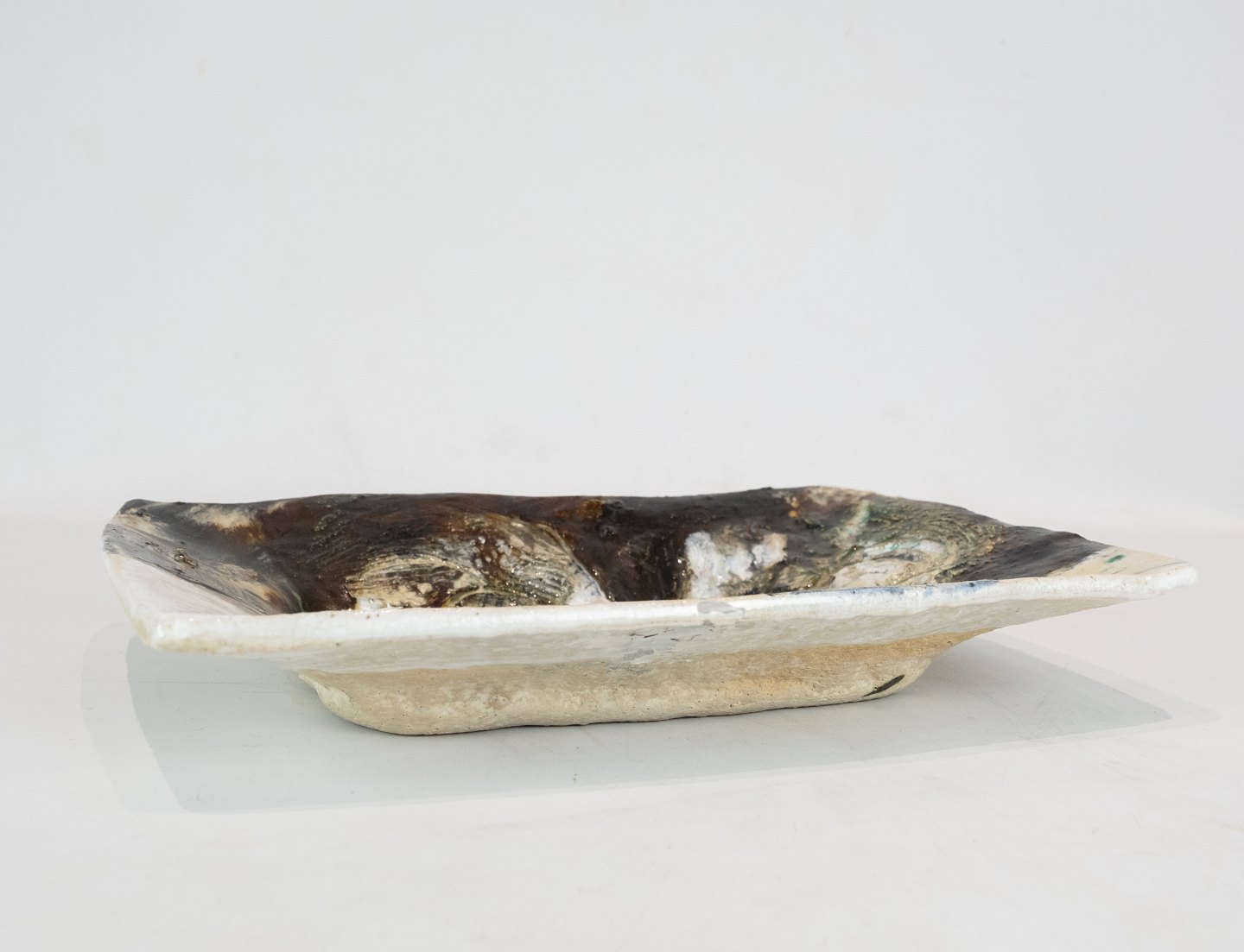 Ceramic dish in dark and light colors by Jeppe Hagedorn Olsen. The dish is in great vintage condition.