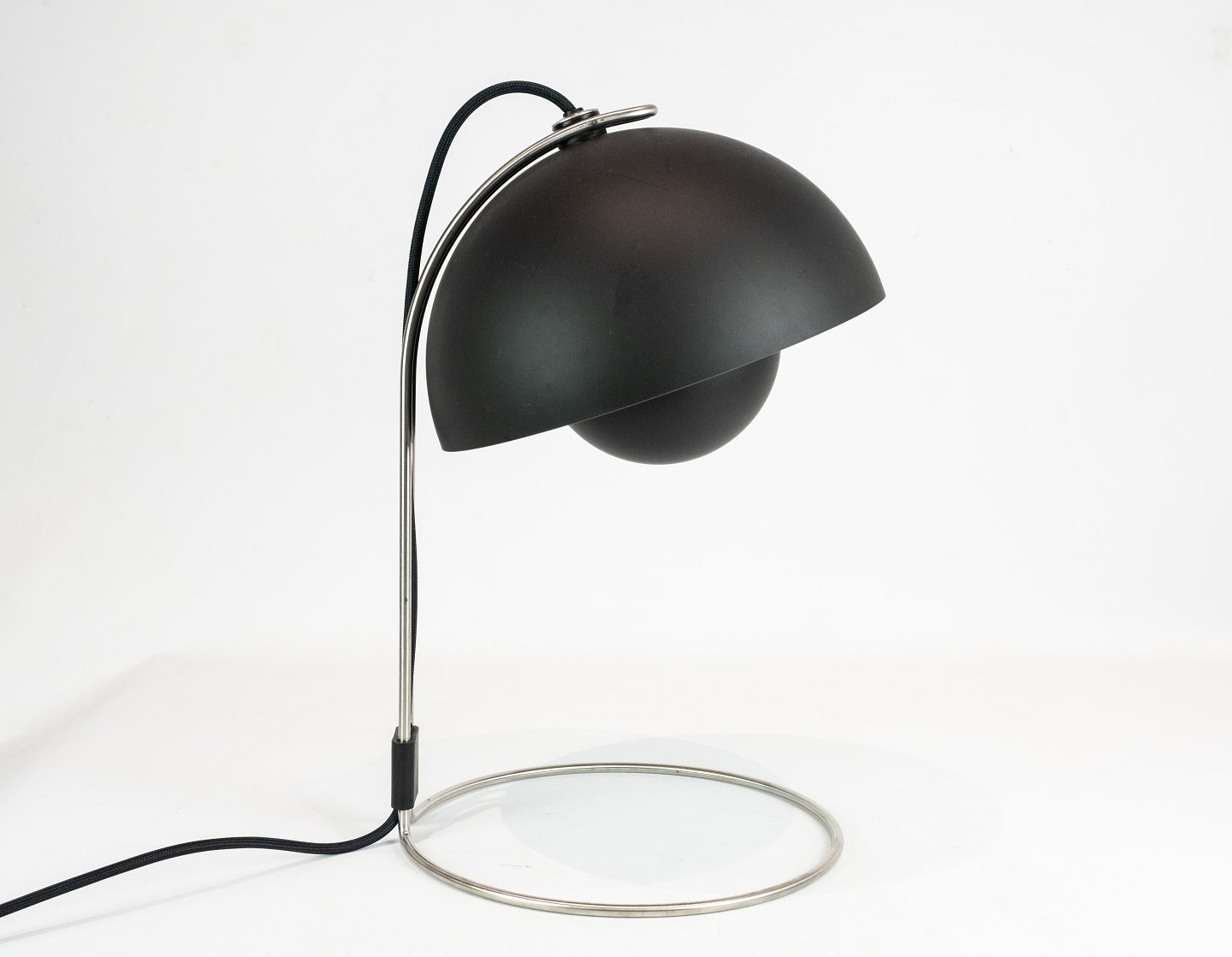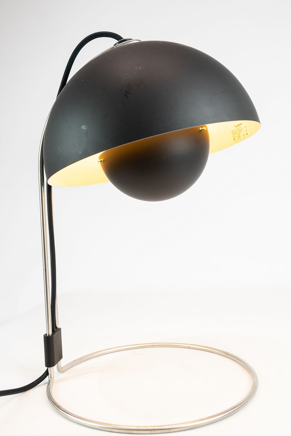 SoldBlack flowerpot tablelamp, model VP4, designed by Verner Panton in 1968 and manufactured by &Tradition. The lamp is with black mat lacquered shades.