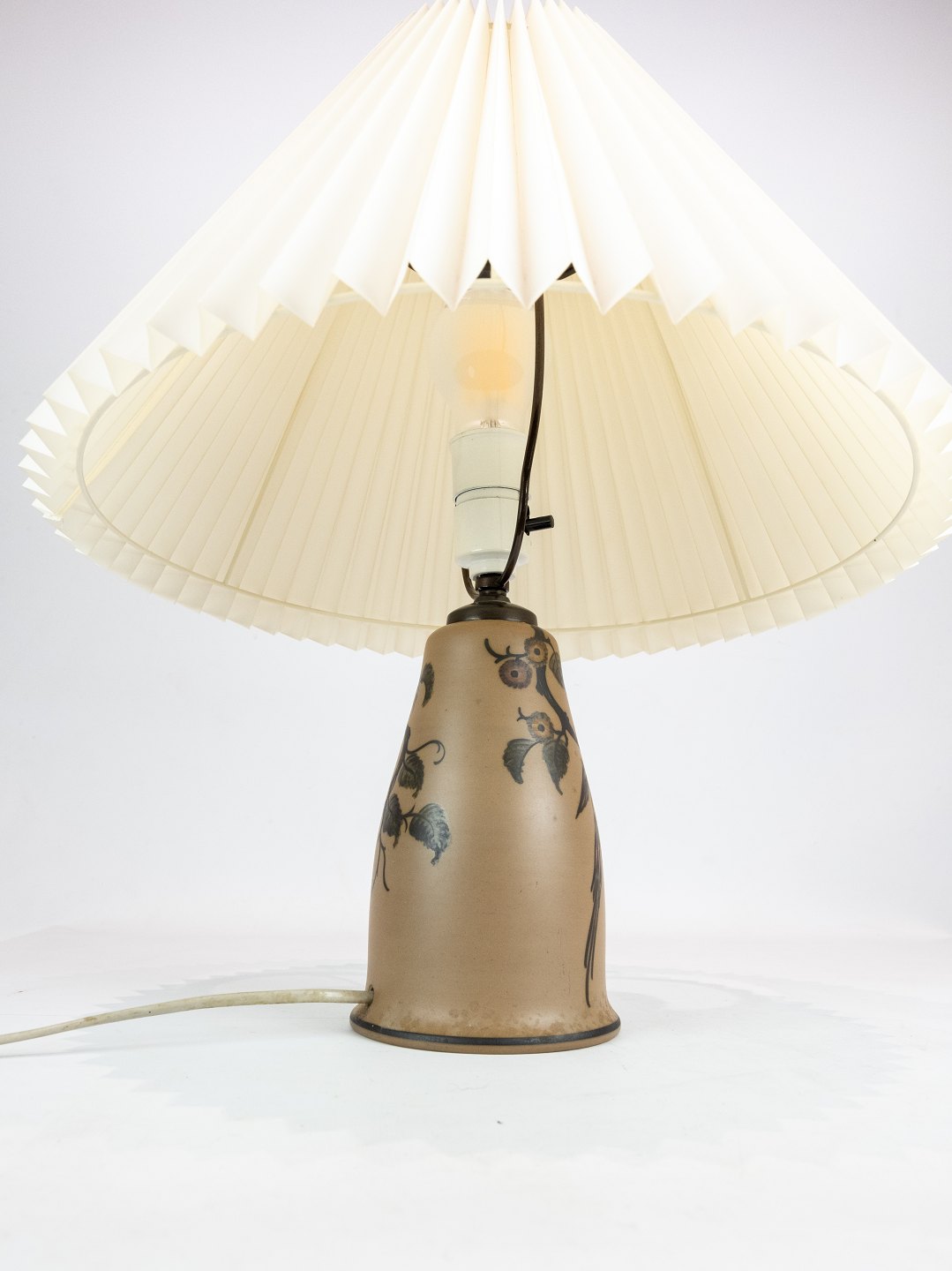 Tablelamp in brown colours, model MAG9, by Hjort Denmark. The shade is handfolded and handpainted of paper.