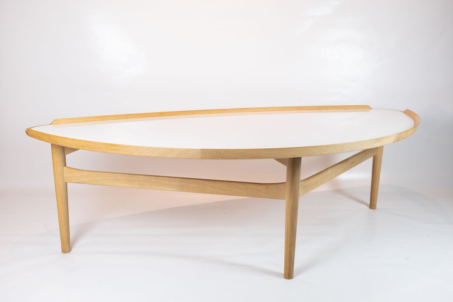 SolgtCocktail bord i eg og hvid laminat designet af Finn Juhl i 1951. Bordet blev oprindeligt tegnet til det amerikanske firma Baker Furniture.