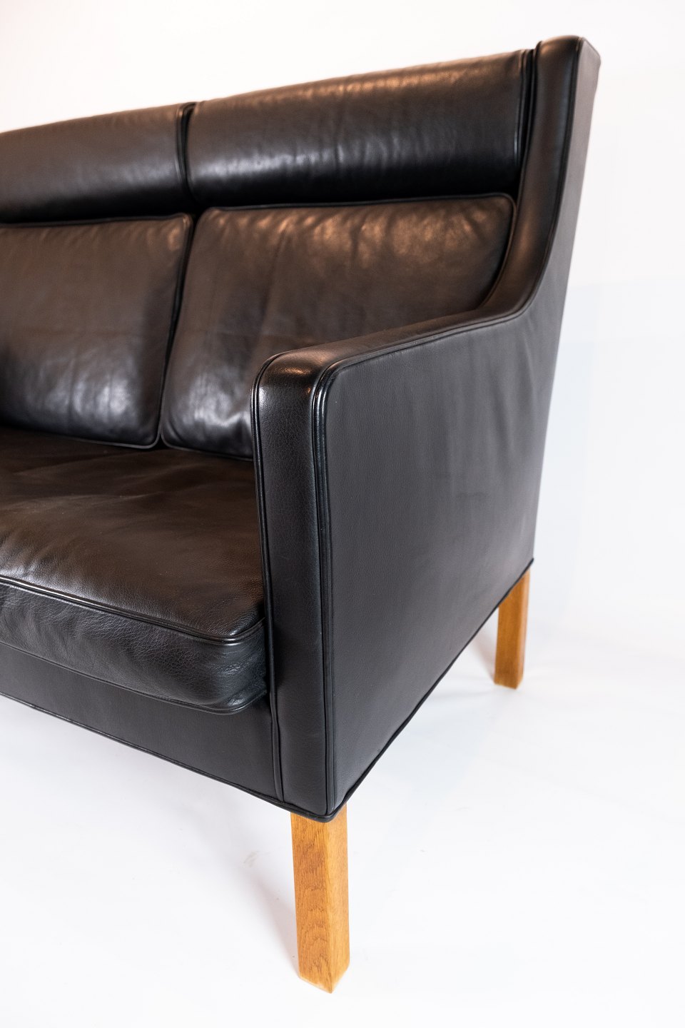 This sofa exudes a simple and timeless elegance with its black leather cover and robust construction. Børge Mogensen was known for his focus on functionality and honest materials, and this is clearly reflected in the design of the Kupe sofa.