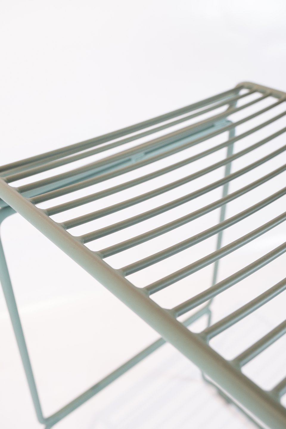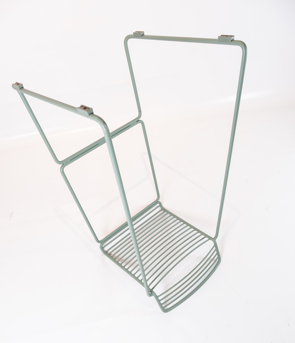 Det lakerede lyseblå metalstel giver en frisk og luftig fornemmelse, der passer perfekt til enhver moderne indretning. Stolens enkle linjer og lette udseende tilføjer et strejf af lethed til ethvert rum.