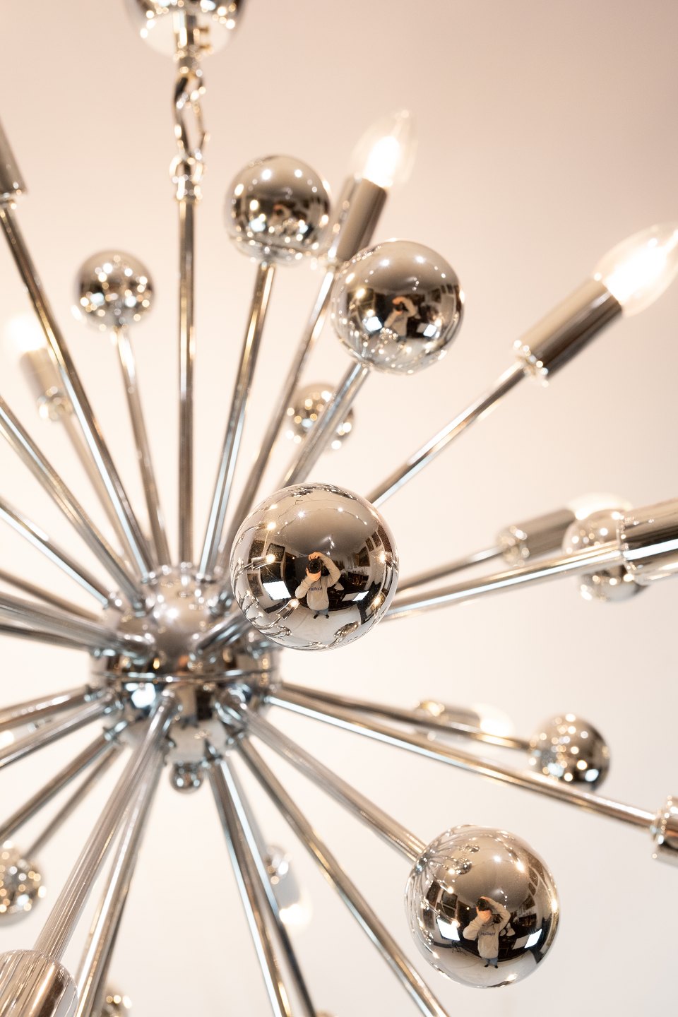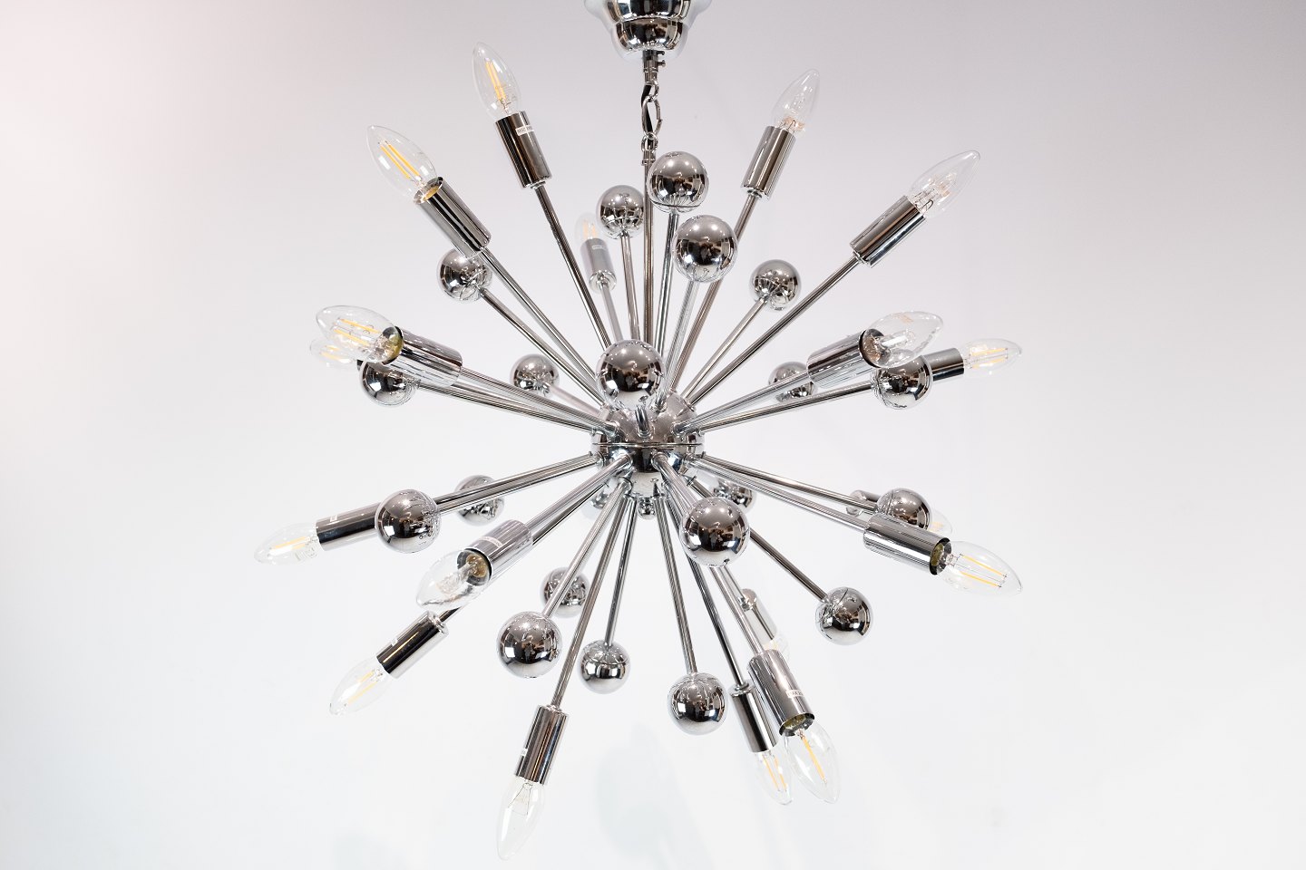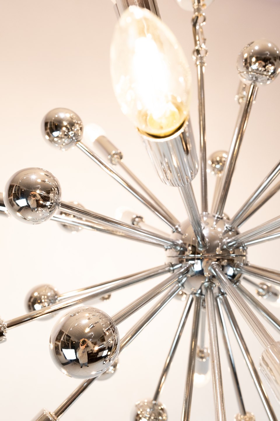 SolgtLoft Sputnik pendel i krom designet af Poul De Haan fra Holland og i flot stand.