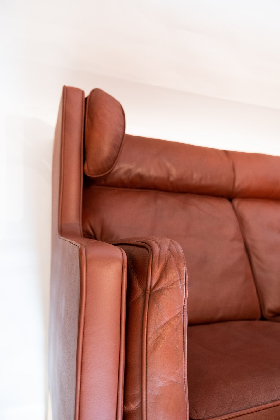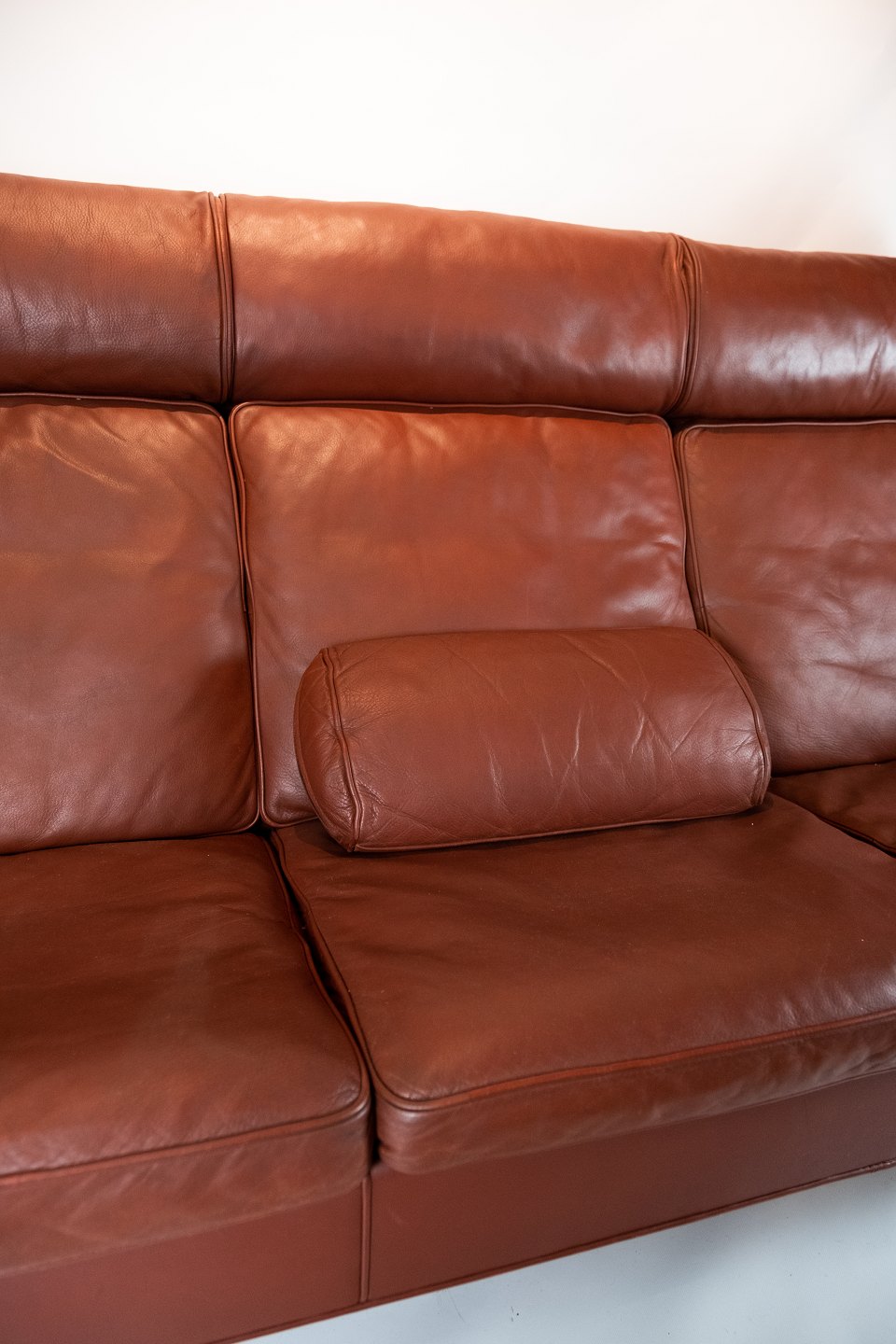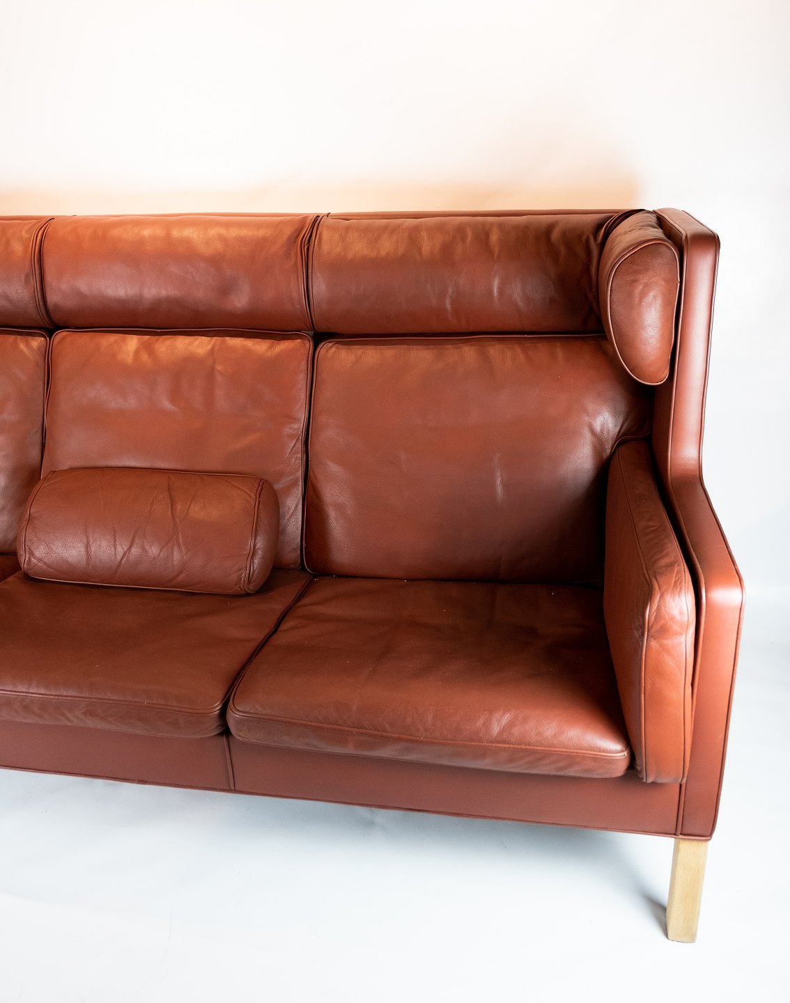 SoldKupe 3 seater sofa, model 2193, designed by Børge Mogensen in 1971 and manufactured by Fredericia Furniture. The sofa is upholstered with red brown leather and is in great vintage condition.