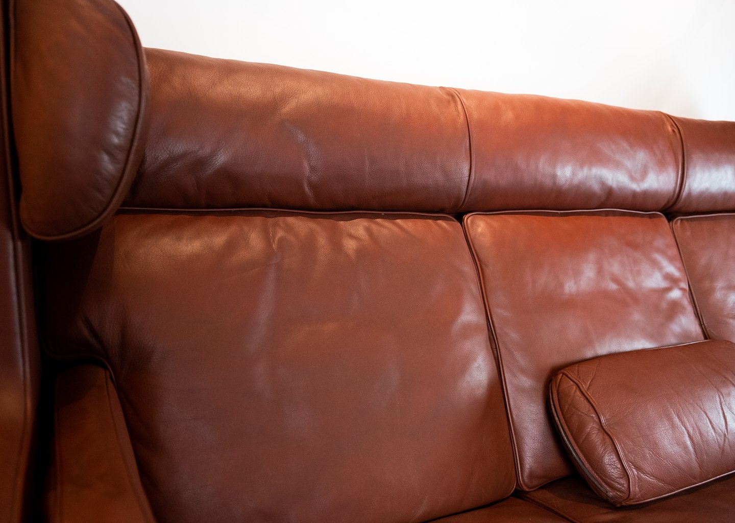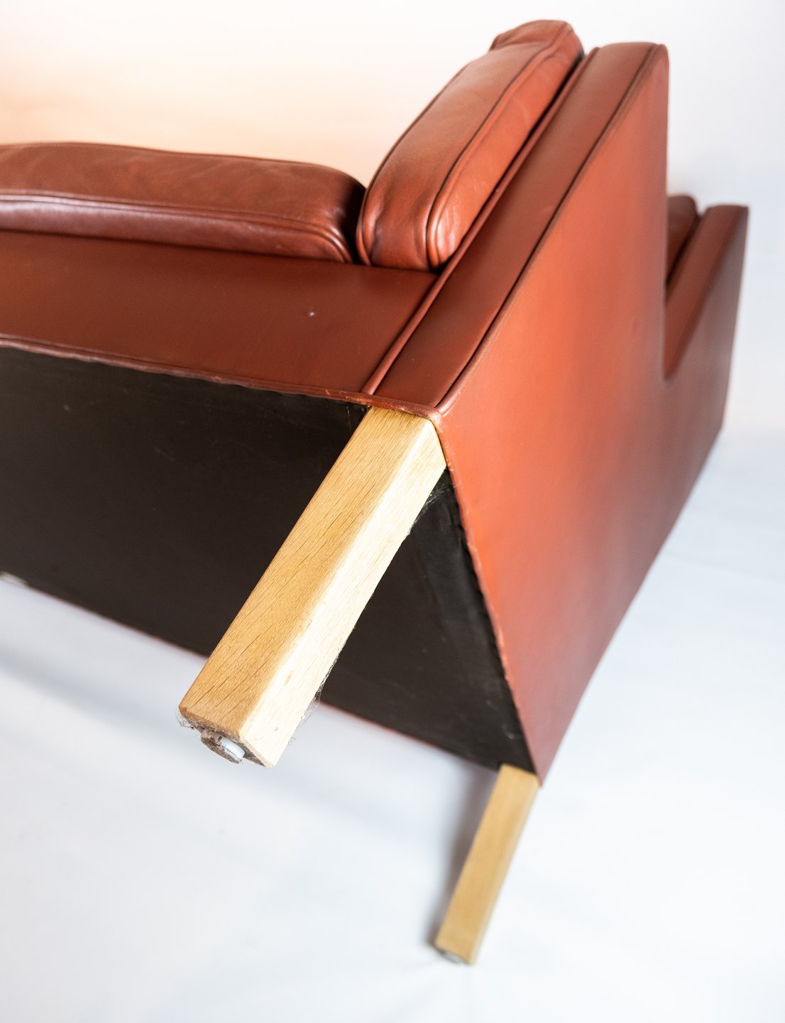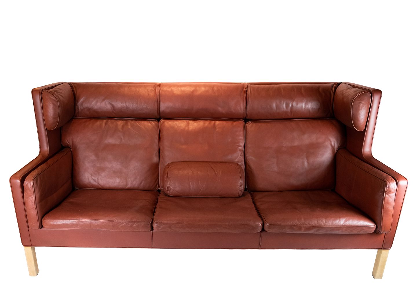 SoldKupe 3 seater sofa, model 2193, designed by Børge Mogensen in 1971 and manufactured by Fredericia Furniture. The sofa is upholstered with red brown leather and is in great vintage condition.