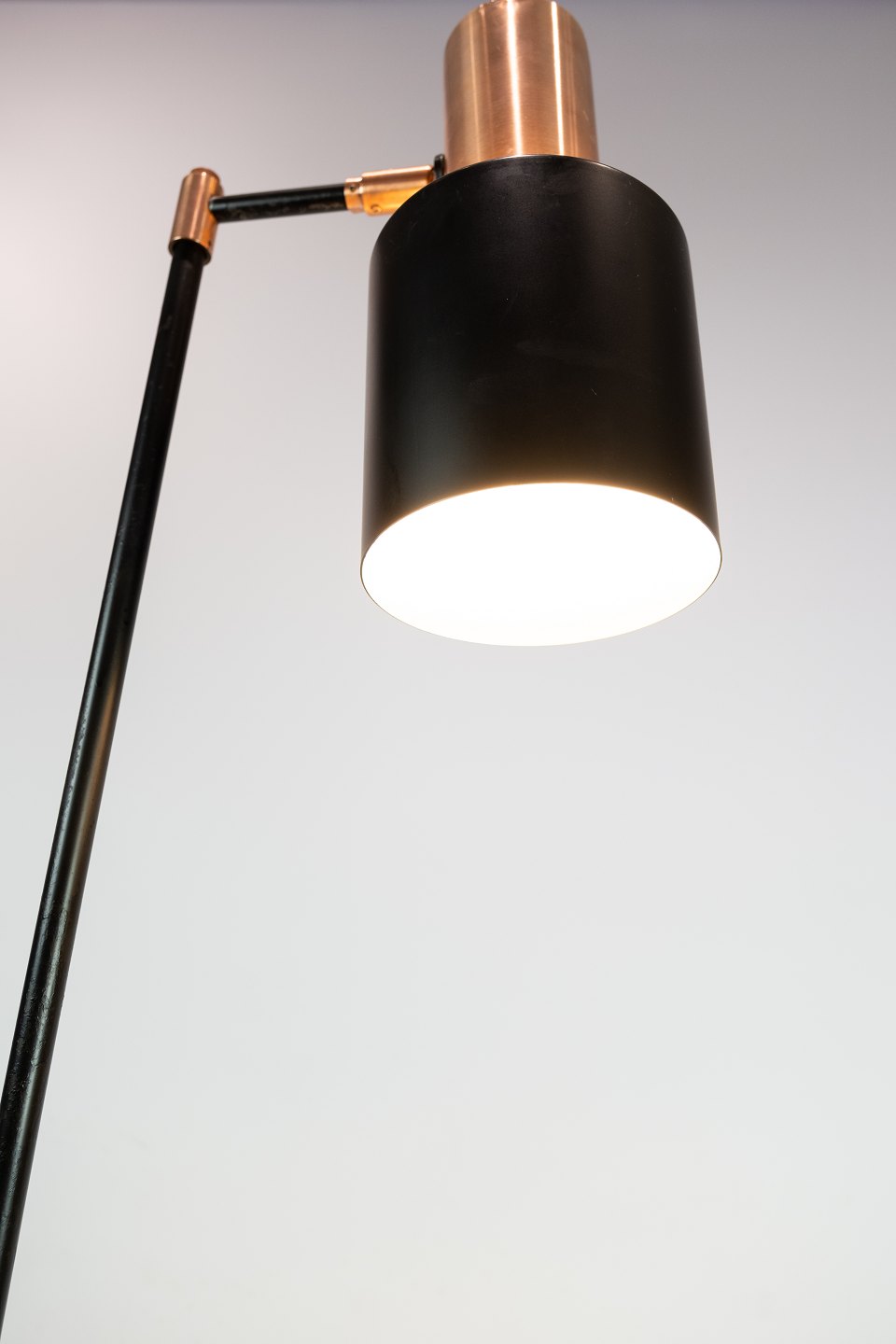 SoldFloor lamp, Studio, by Jo Hammerborg for Fog & Mørup from the 1970s. The lamp is of copper and black metal.