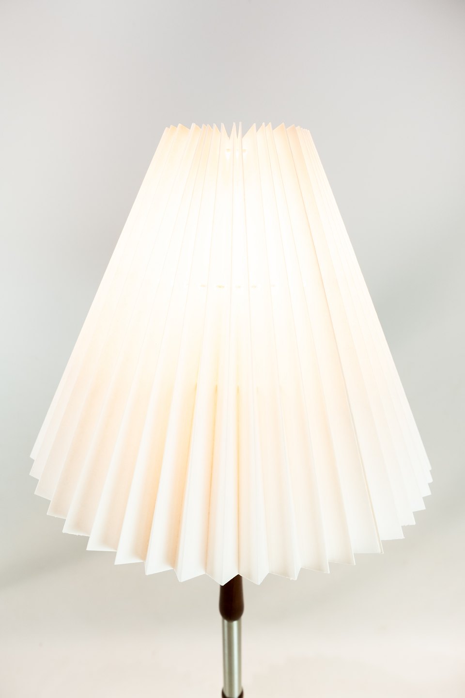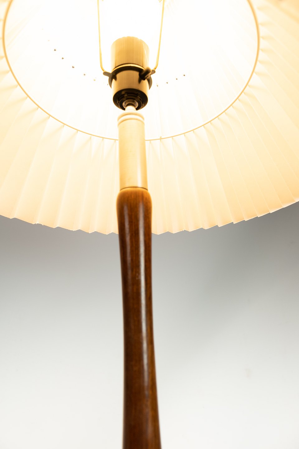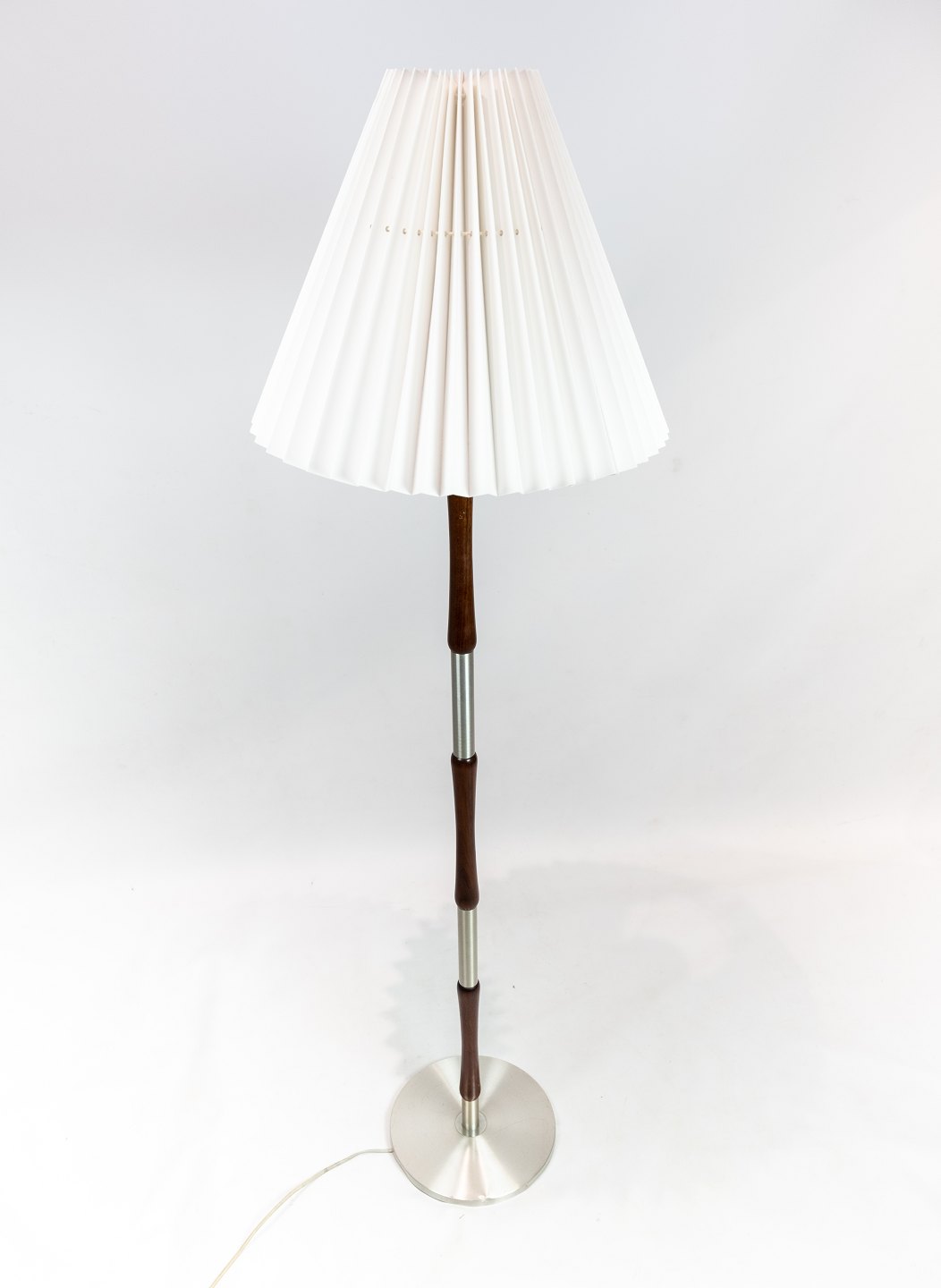 SoldFloor lamp in rosewood and aluminum of danish design from the 1960s. the shade is handfolded and handpainted in paper.