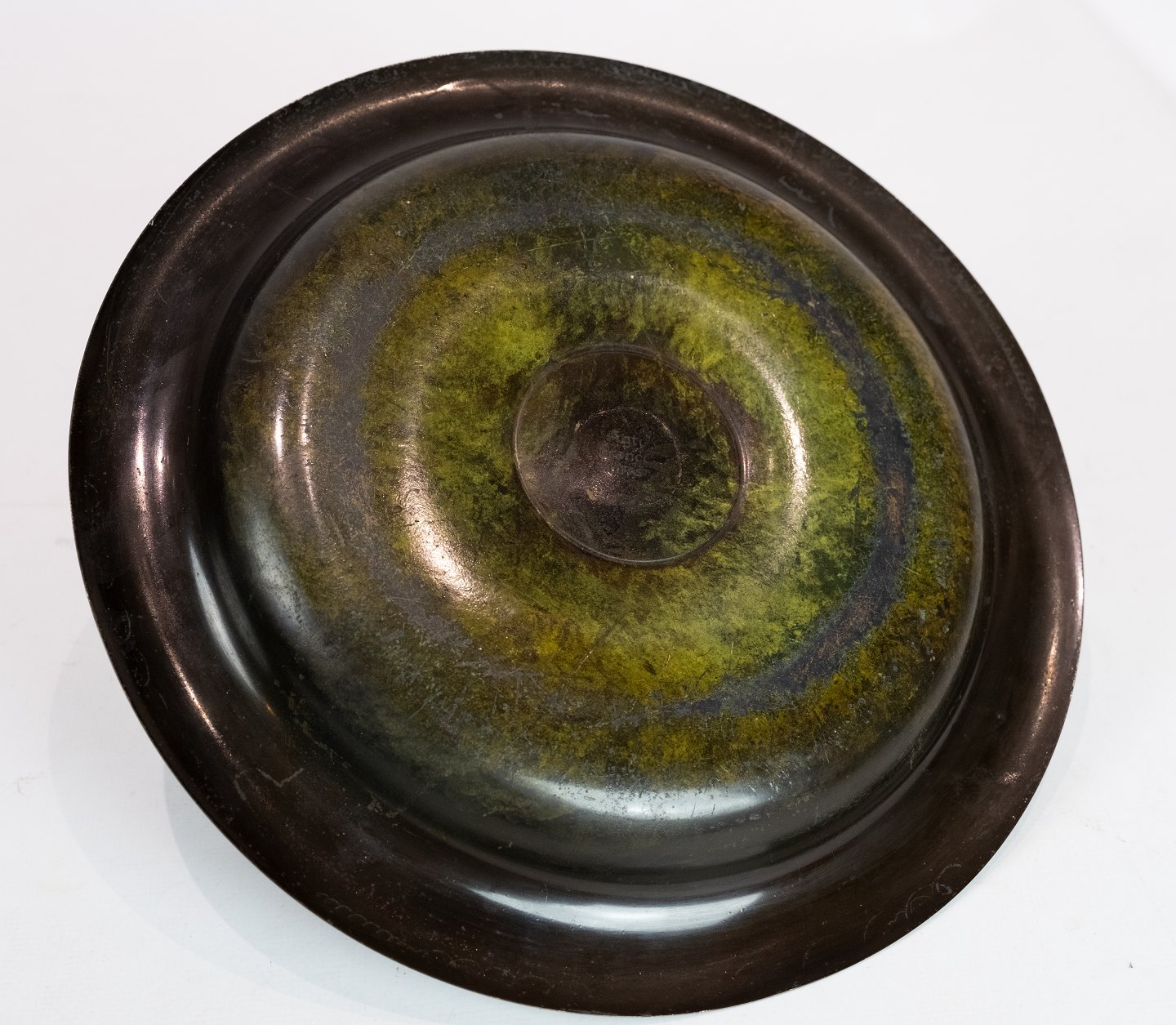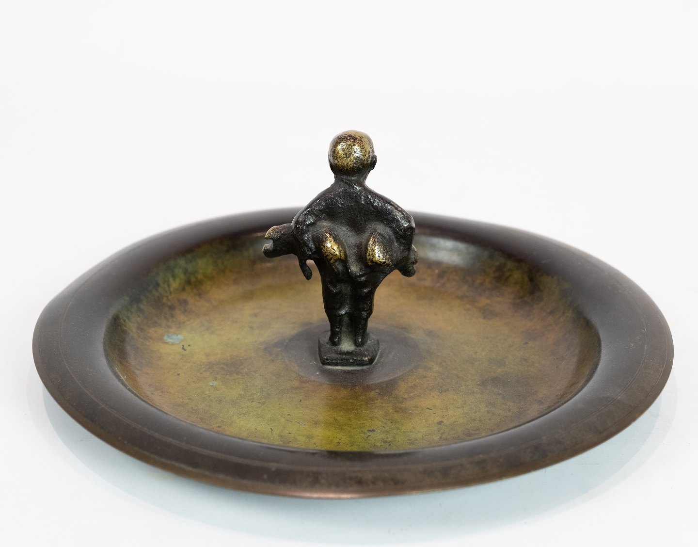 Round dish of bronze decorated with boy figure. The dish is in great vintage condition.