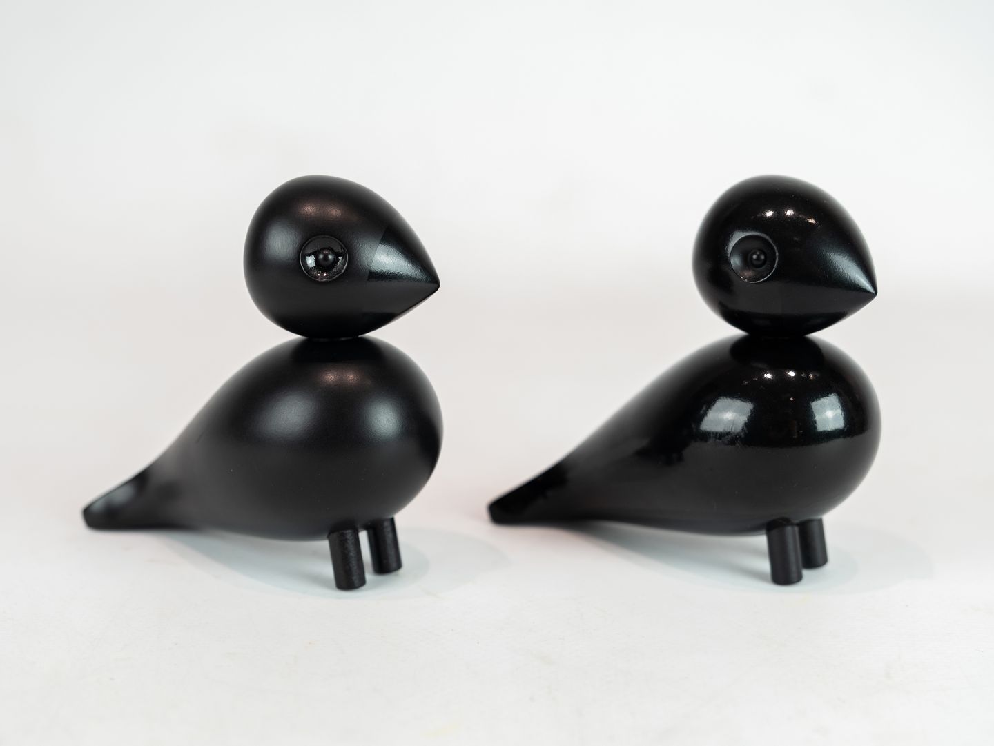 A pair of Kay Bojesen turtle doves in black painted wood.