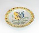 To Kelling Husen tallerkner dekoreret i gule farver med forskellige motiver af tysk fajance fra 1780.
