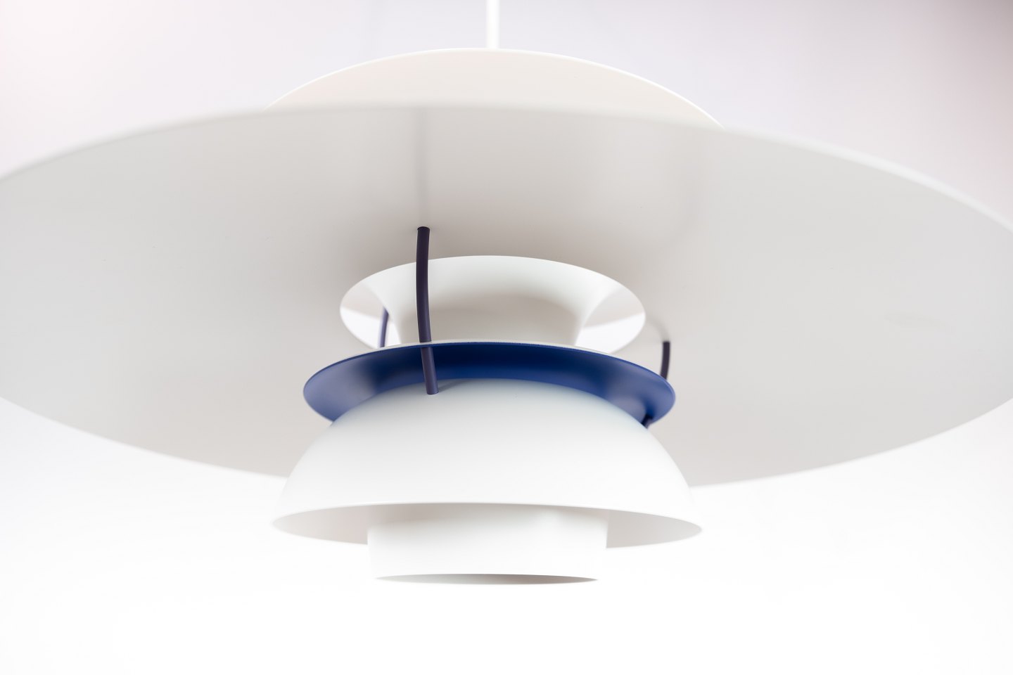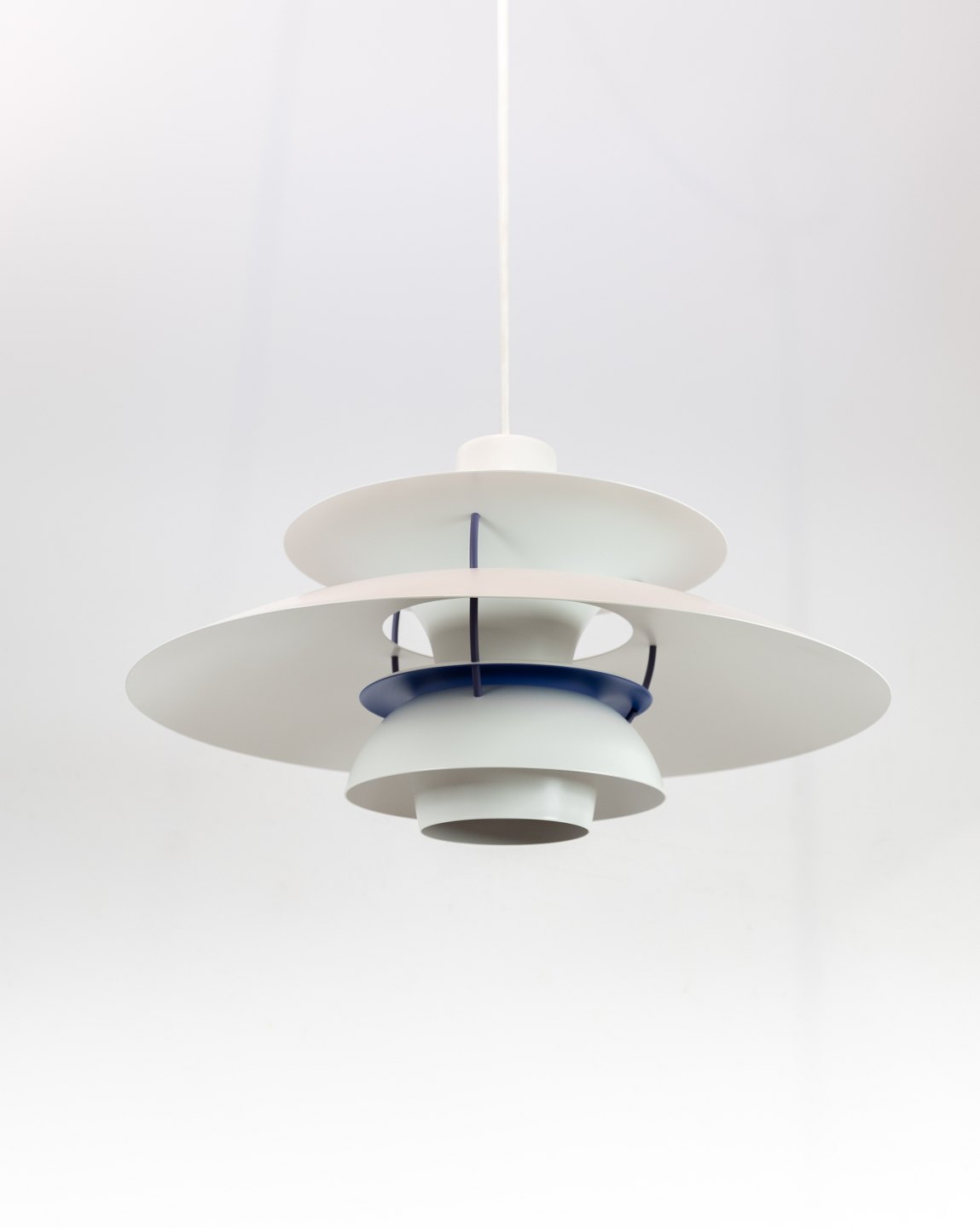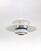 PH5 lampe designet af Poul Henningsen i 1958 og fremstillet af Louis Poulsen. Lampen har lakerede metal skærme i hvid og af nyere model.
