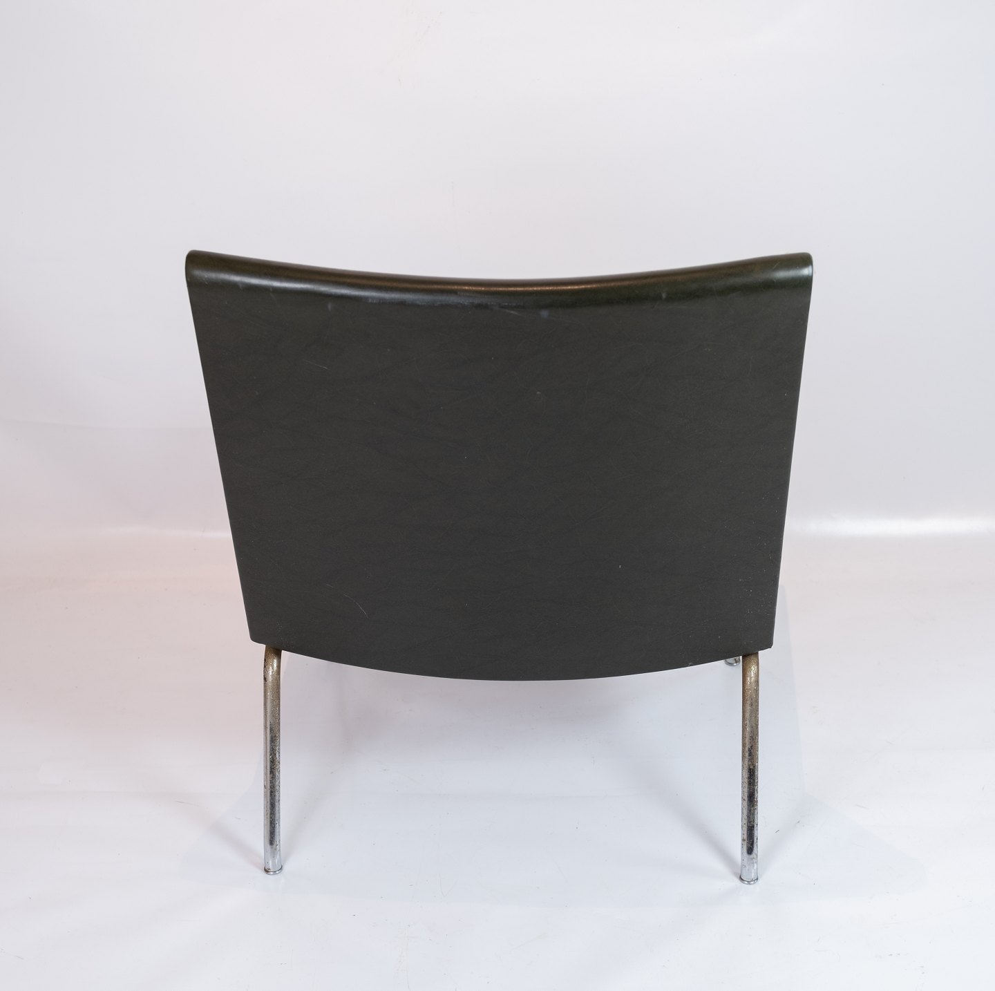 The CH401 lounge chair, designed by Hans J. Wegner in 1958, is a notable piece from the minimalist Kastrup Series, which continues to be in use in the inviting interior of Copenhagen Airport to this day.