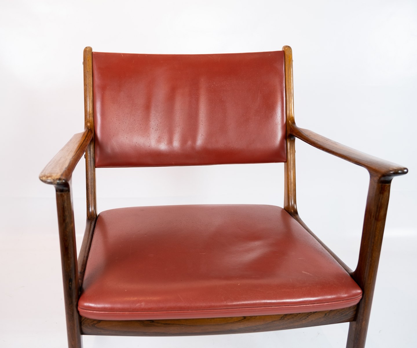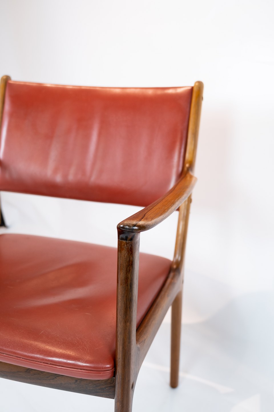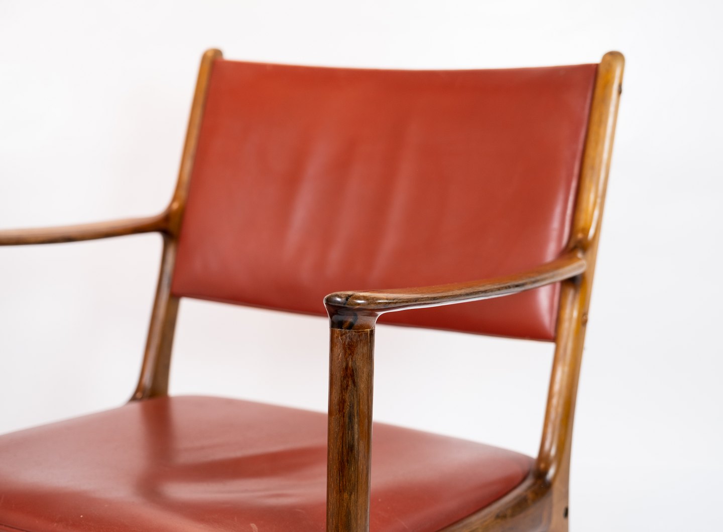Set of Six Armchairs - Model PJ 412 - Red Brown Leather - Rosewood - Ole Wanscher - P. Jeppesen Furniture - 1960