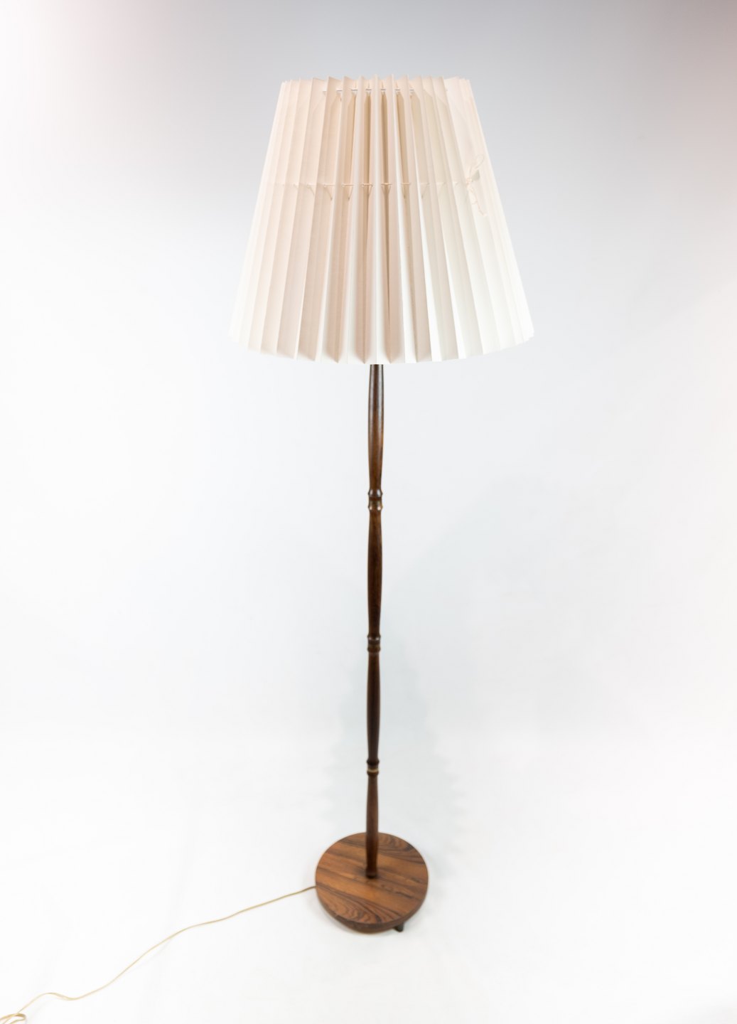 SoldFloor lamp in rosewood of danish design from the 1960s. The shade is hand painted and hand folded in paper.