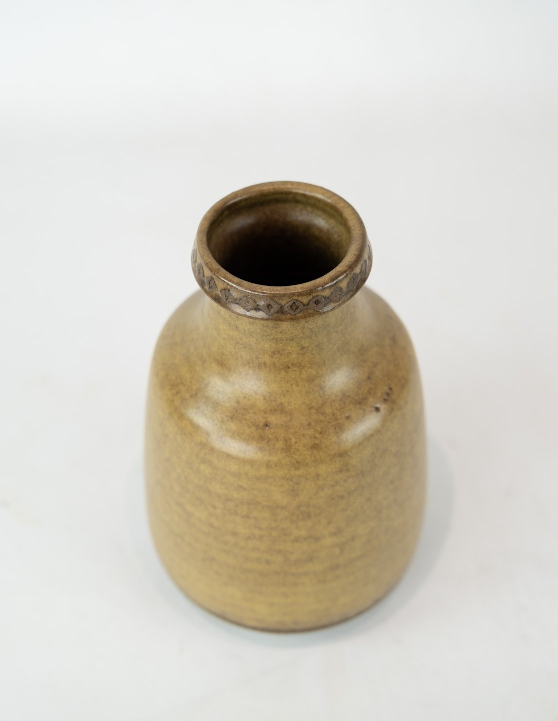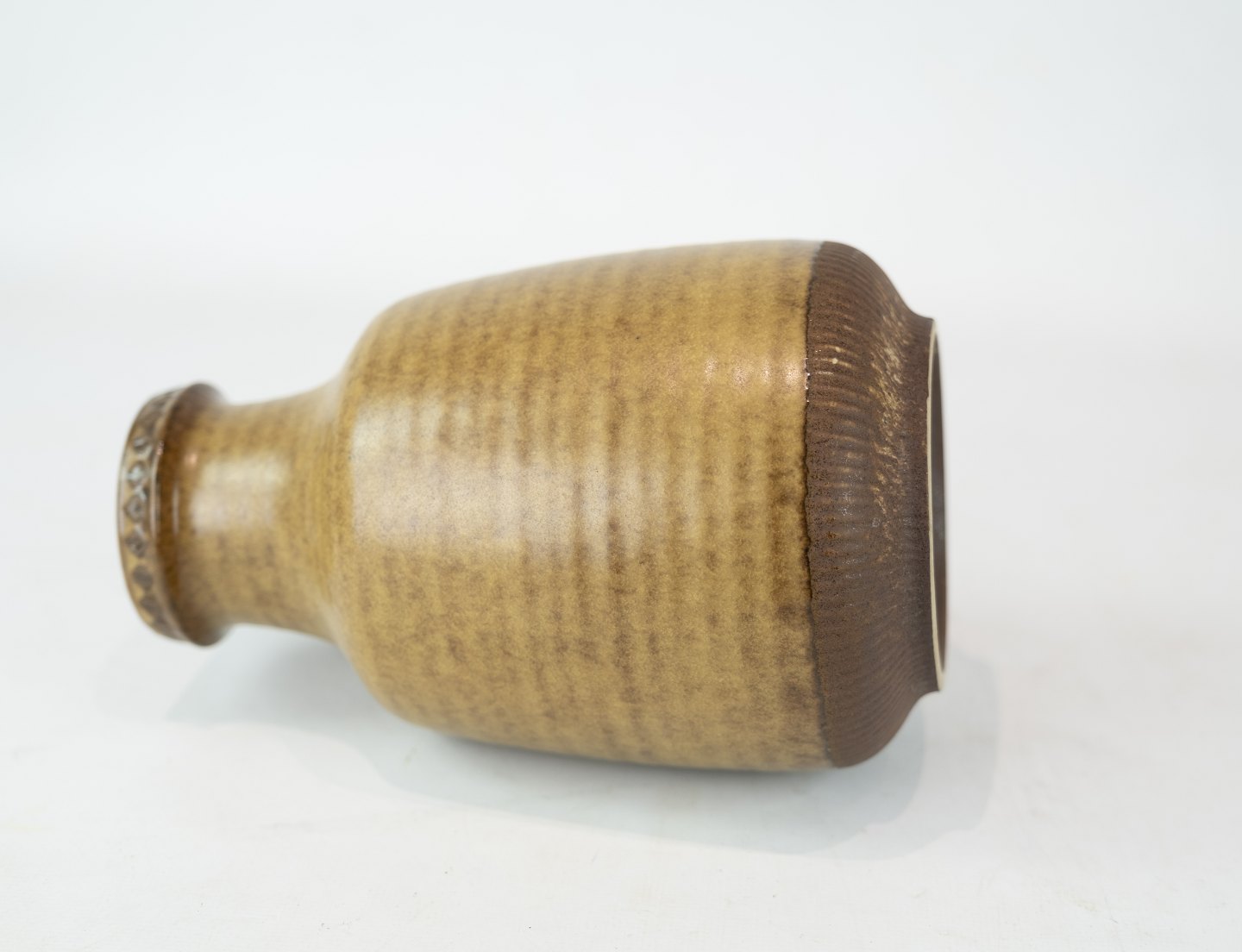 SolgtKeramik vase i brune og beige farver af Gunnar Nylund for Rörstrand.