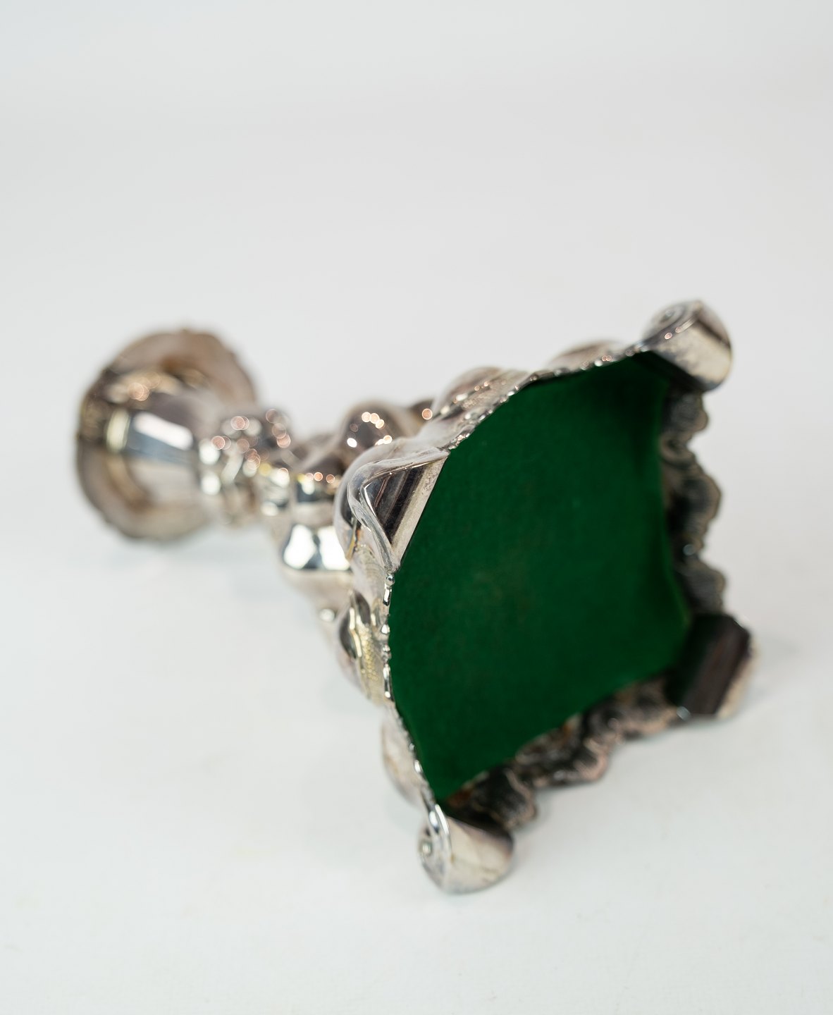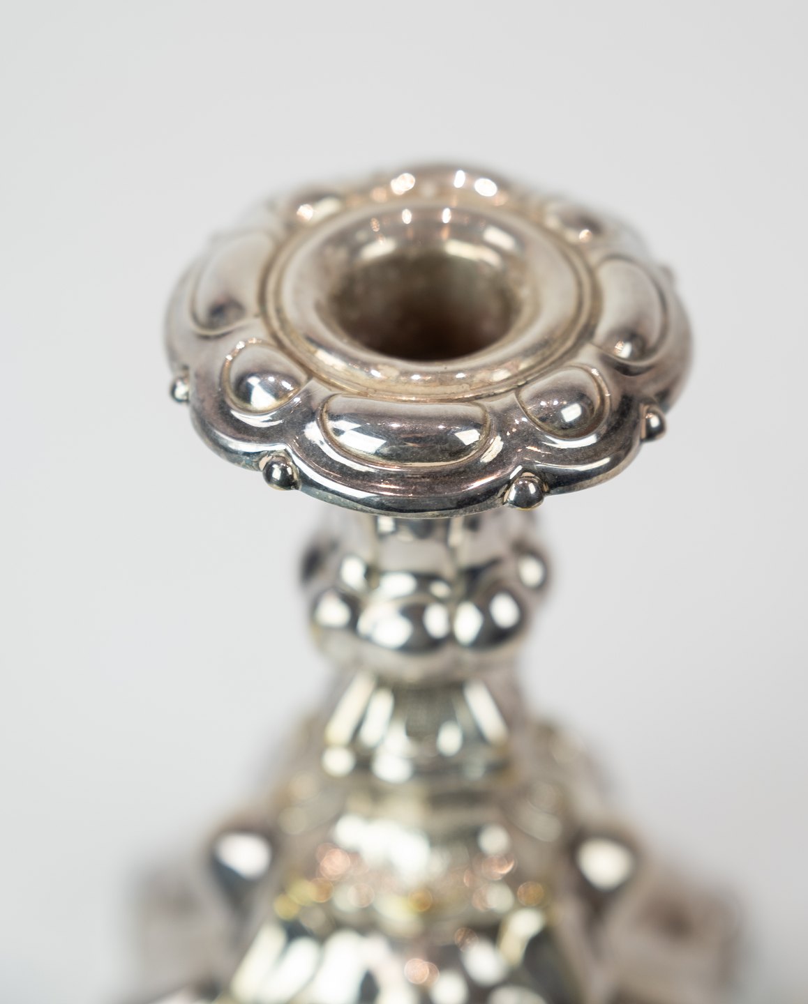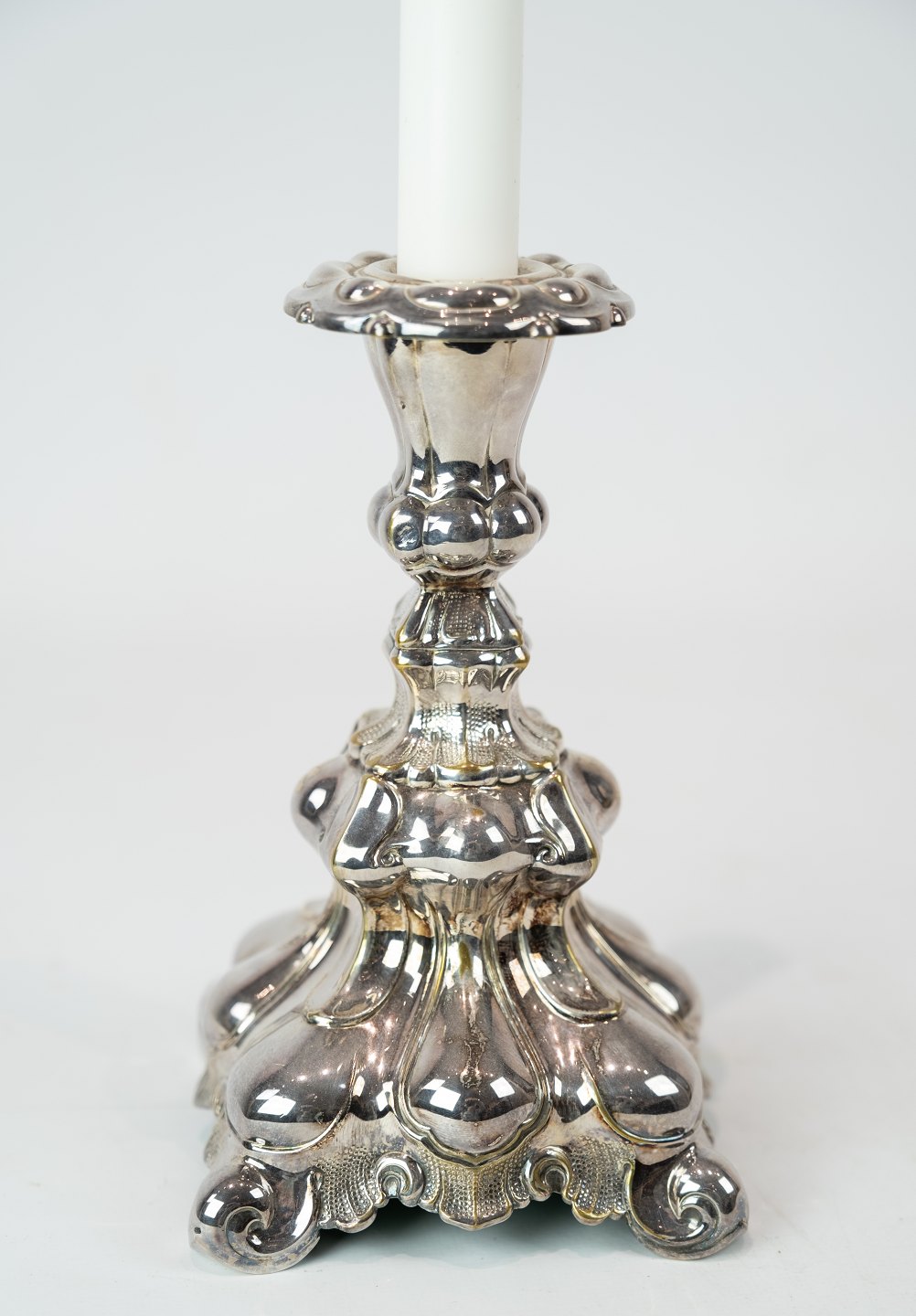 A set of silvered rococo candlesticks, in great used condition from the 1920s.