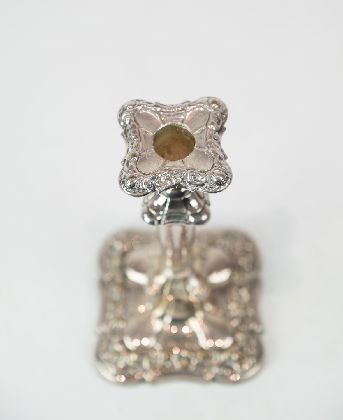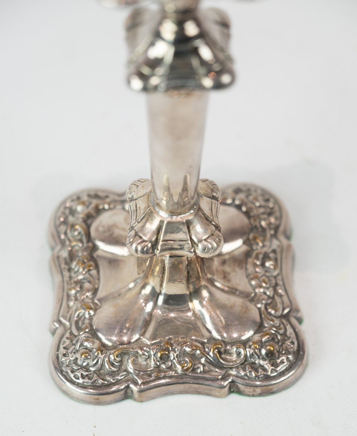Et sæt forsølvede lysestager, i flot stand og i jugend stil fra 1920erne.