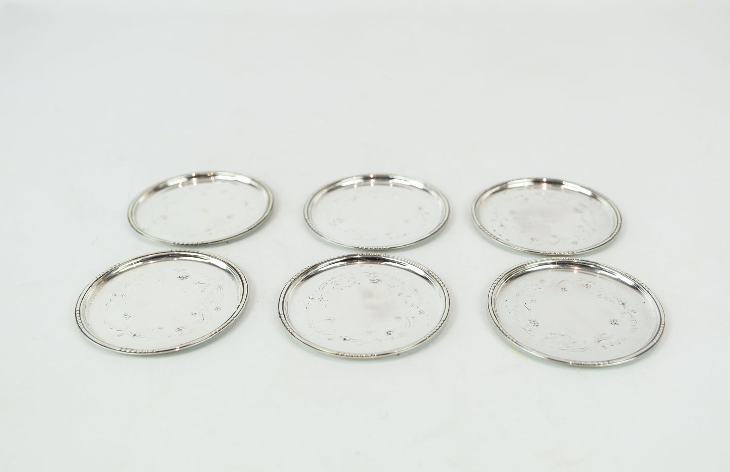SoldSet of glass trays in hallmarked silver.