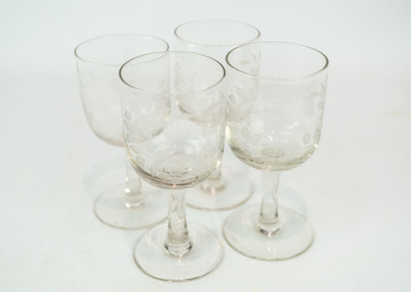 Sæt af fire erindringsglas af Holmegaard fra 1890erne.