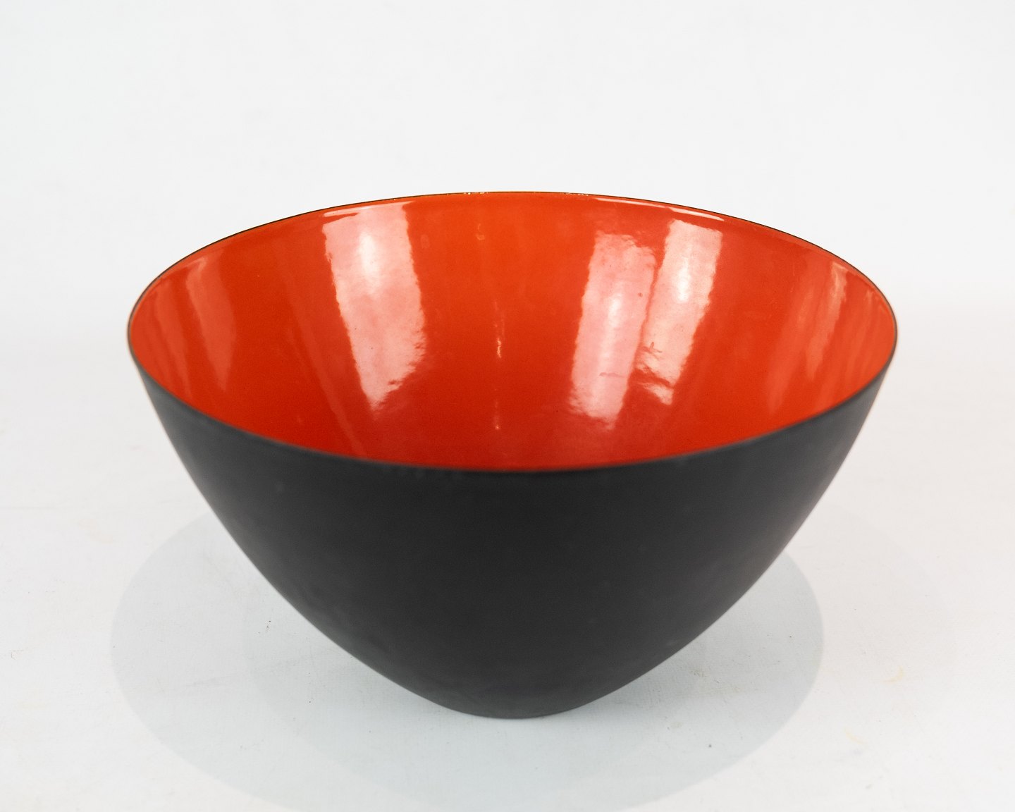 Krenit bowl by Herbert Krenchel in Black metal and red enamel from the 1960s. The bowl is in great vintage condition.