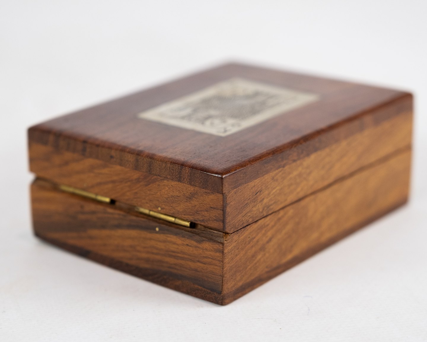 Box for and decorated with playing cards in rosewood.