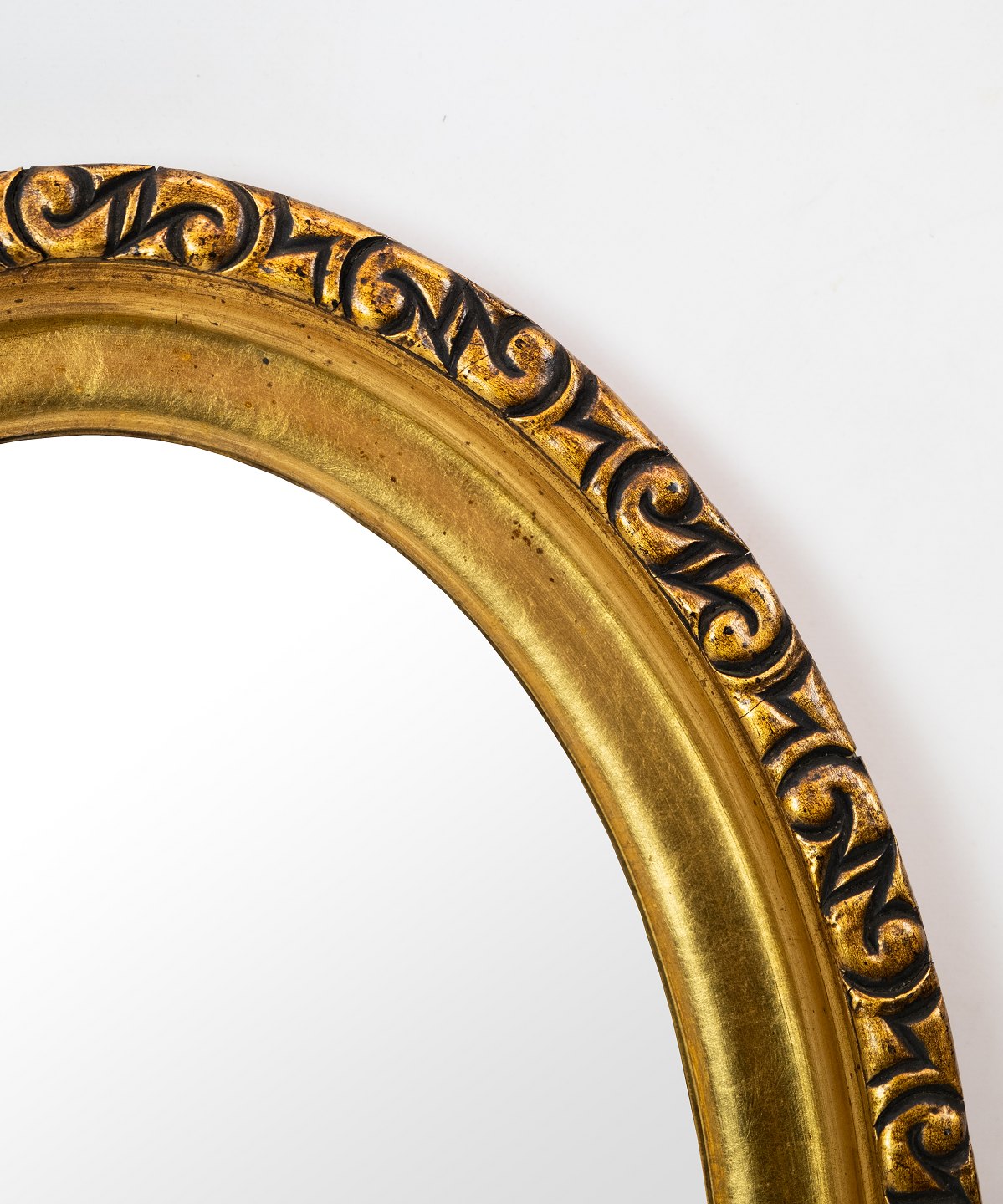 SoldOvale mirror with gilded frame, in great antique condition from the 1890s.