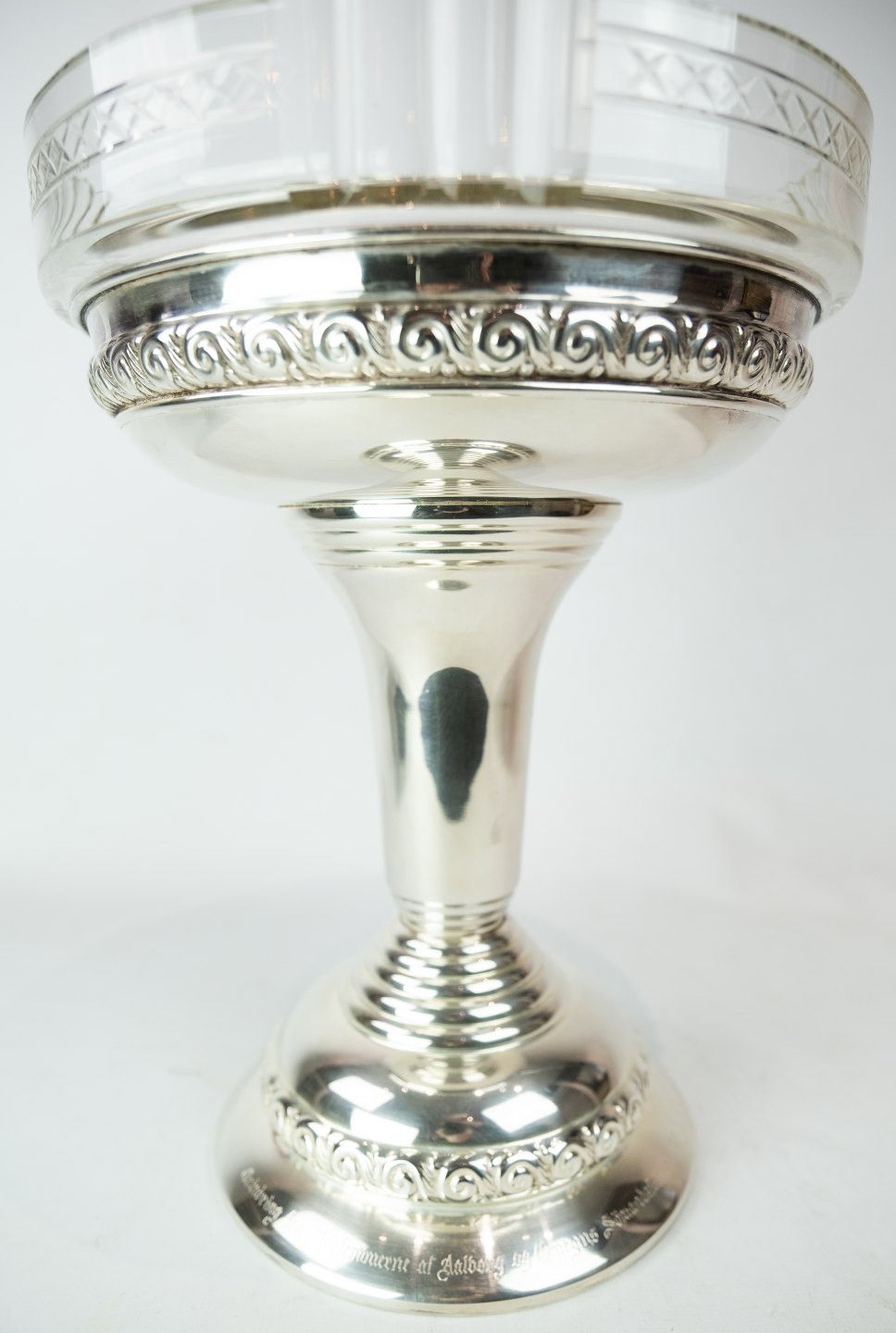 Opsats af sølvplet i Jugendstil med glas indsats fra 1920erne.