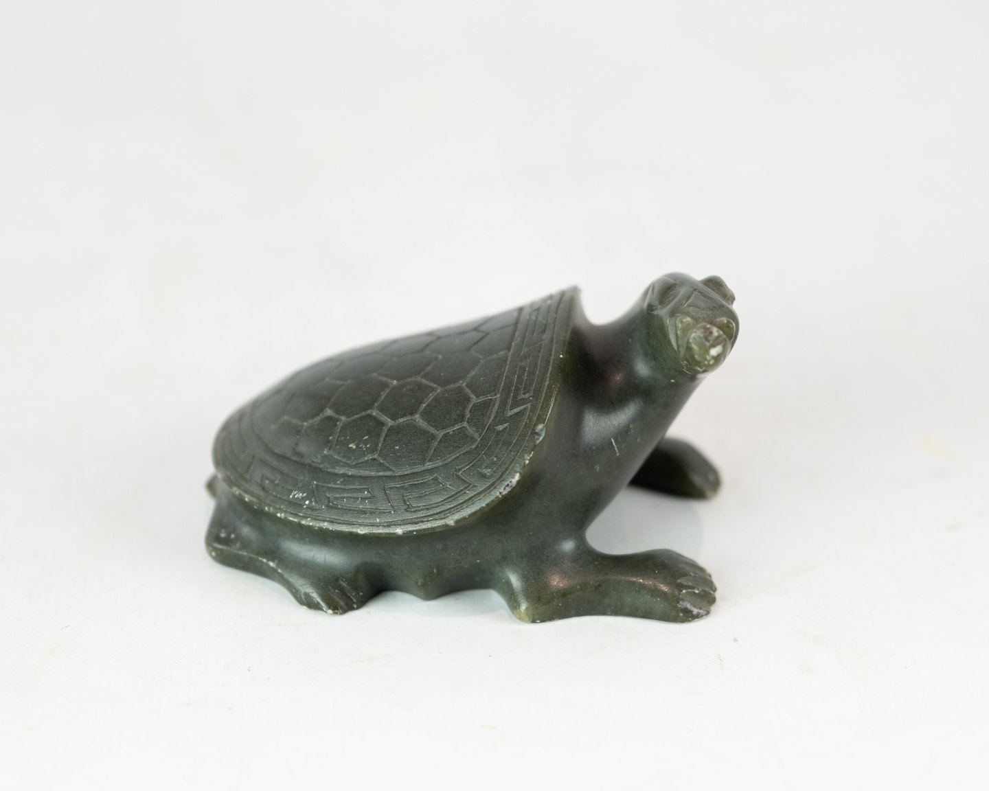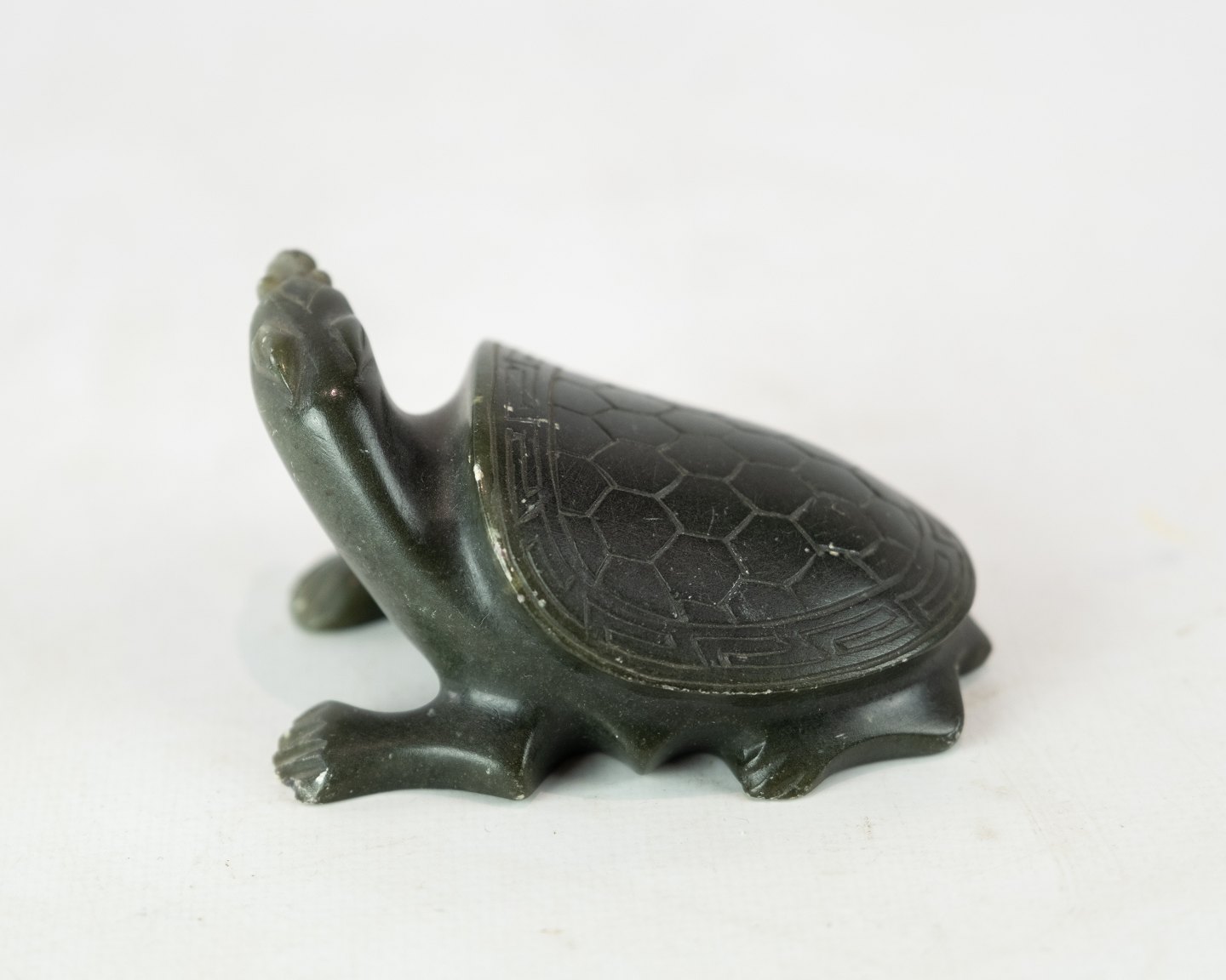 Fedtstenfigur i form af en skildpadde, i flot brugt stand.