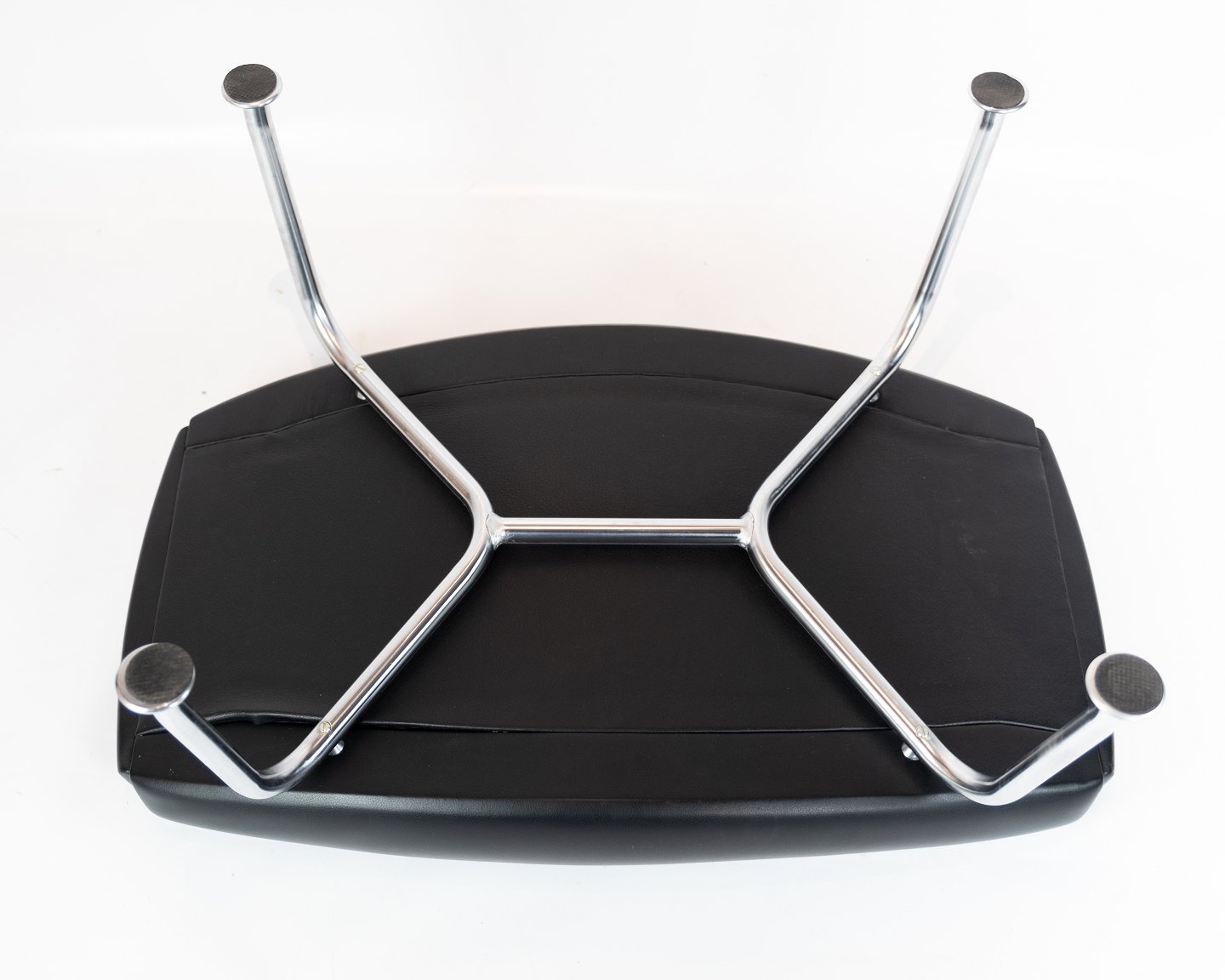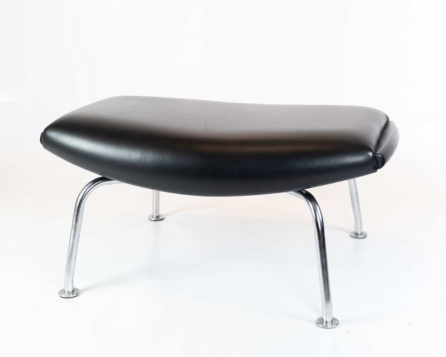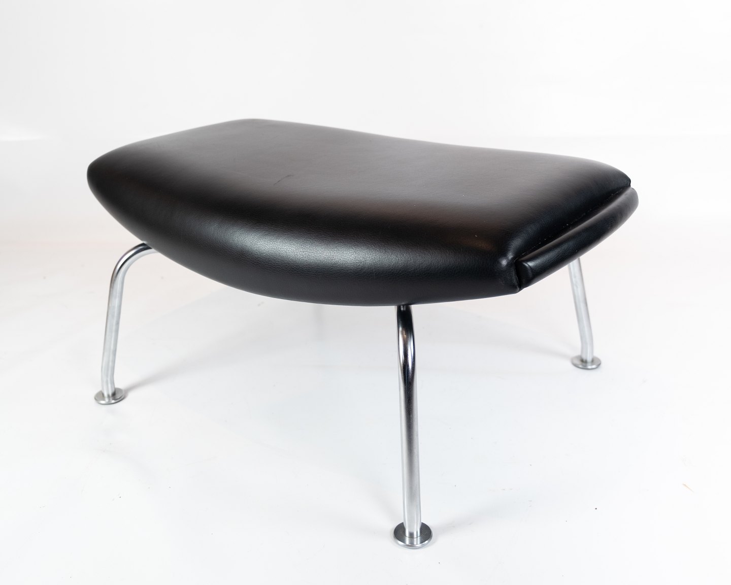 SoldStool for the Ox chair, model EJ 100-F, upholstered in Black leather, designed by Hans J. Wegner in the 1960s and manufactured at Erik Jørgensen furniture factory.
