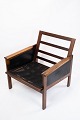 The warm color and natural pattern of the rosewood gives the armchairs a luxurious look and a feeling of solidity and durability. The wood's beautiful grain structure emphasizes the fine craftsmanship that is characteristic of Danish design.