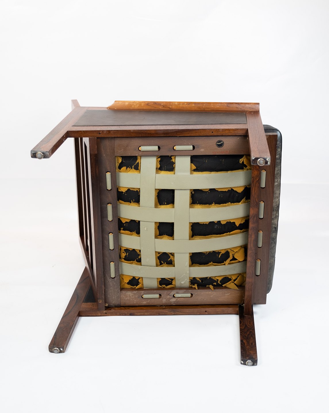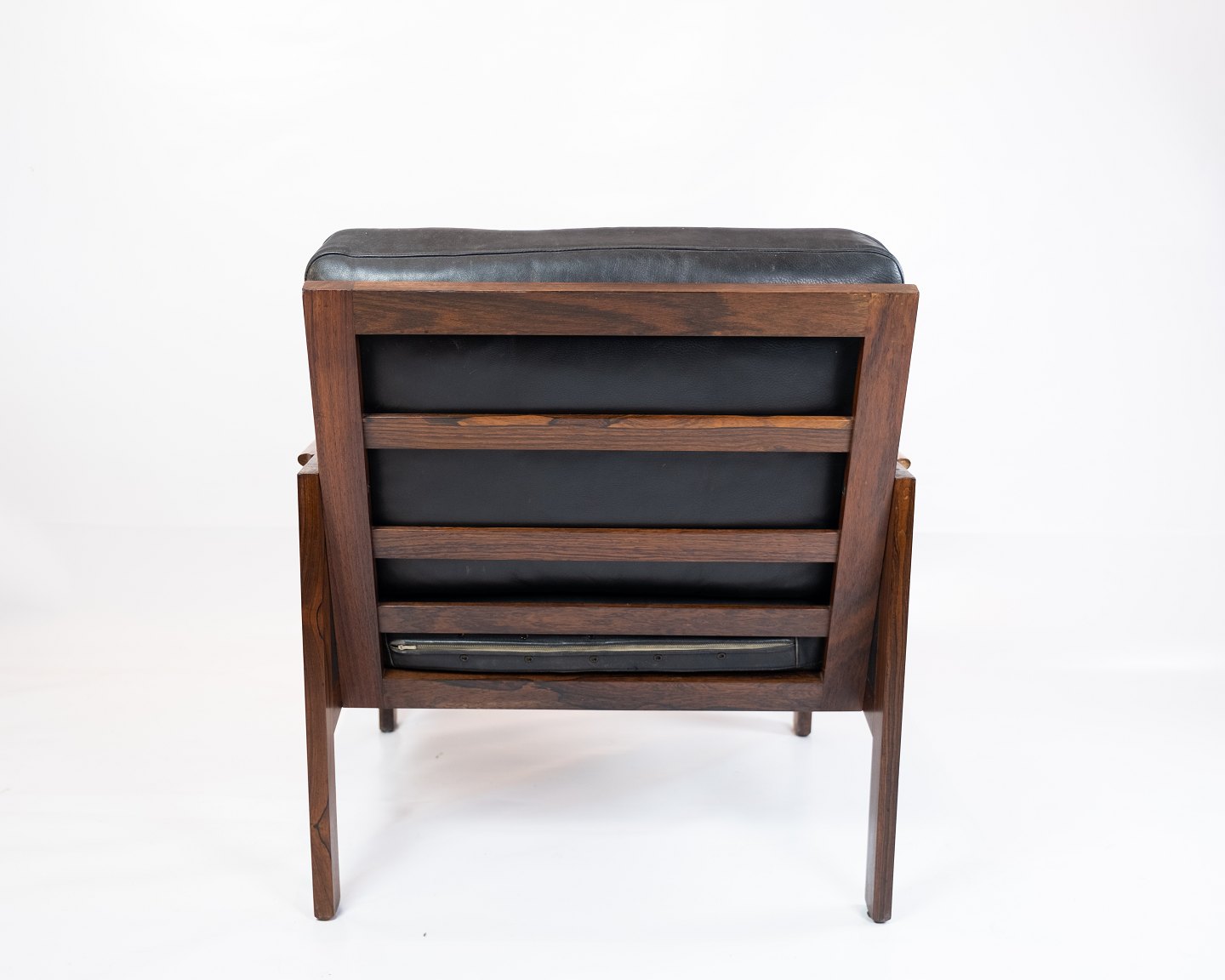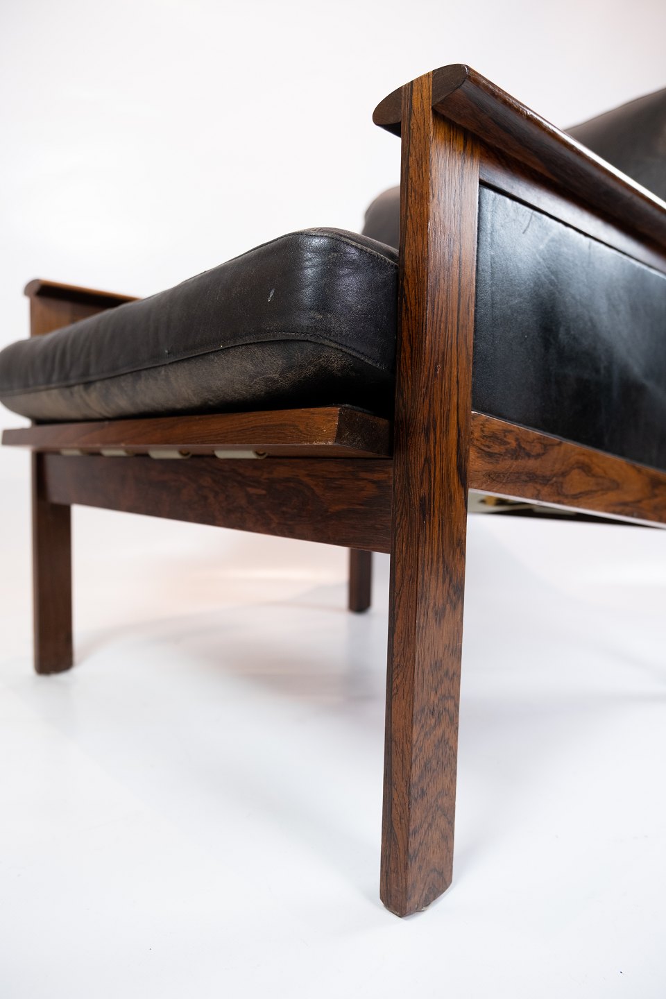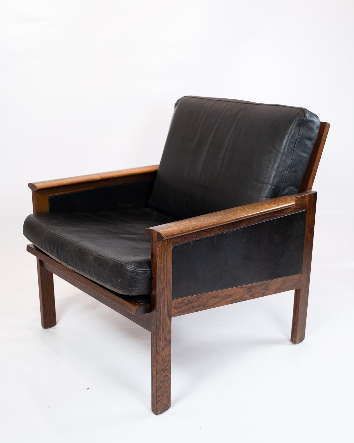 SoldThe set of armchairs, known as Model Capella, is a beautiful example of Danish furniture design from the 1960s. These armchairs were designed by the renowned furniture designer Illum Wikkelsø and are created with a unique combination of rosewood and black elegance leather.
