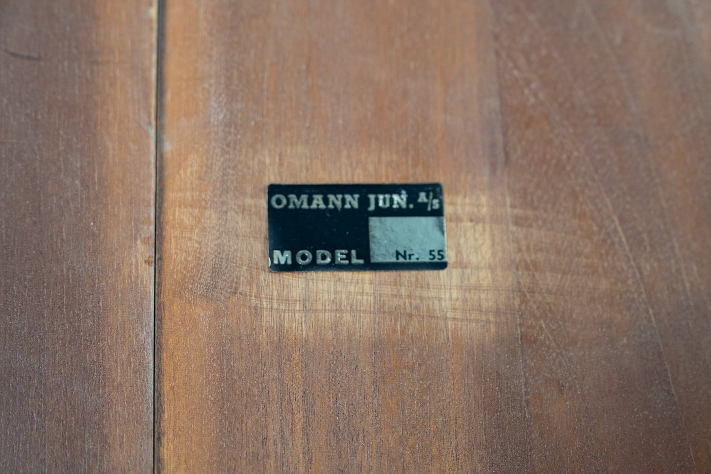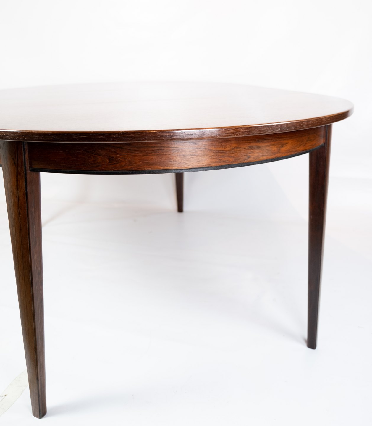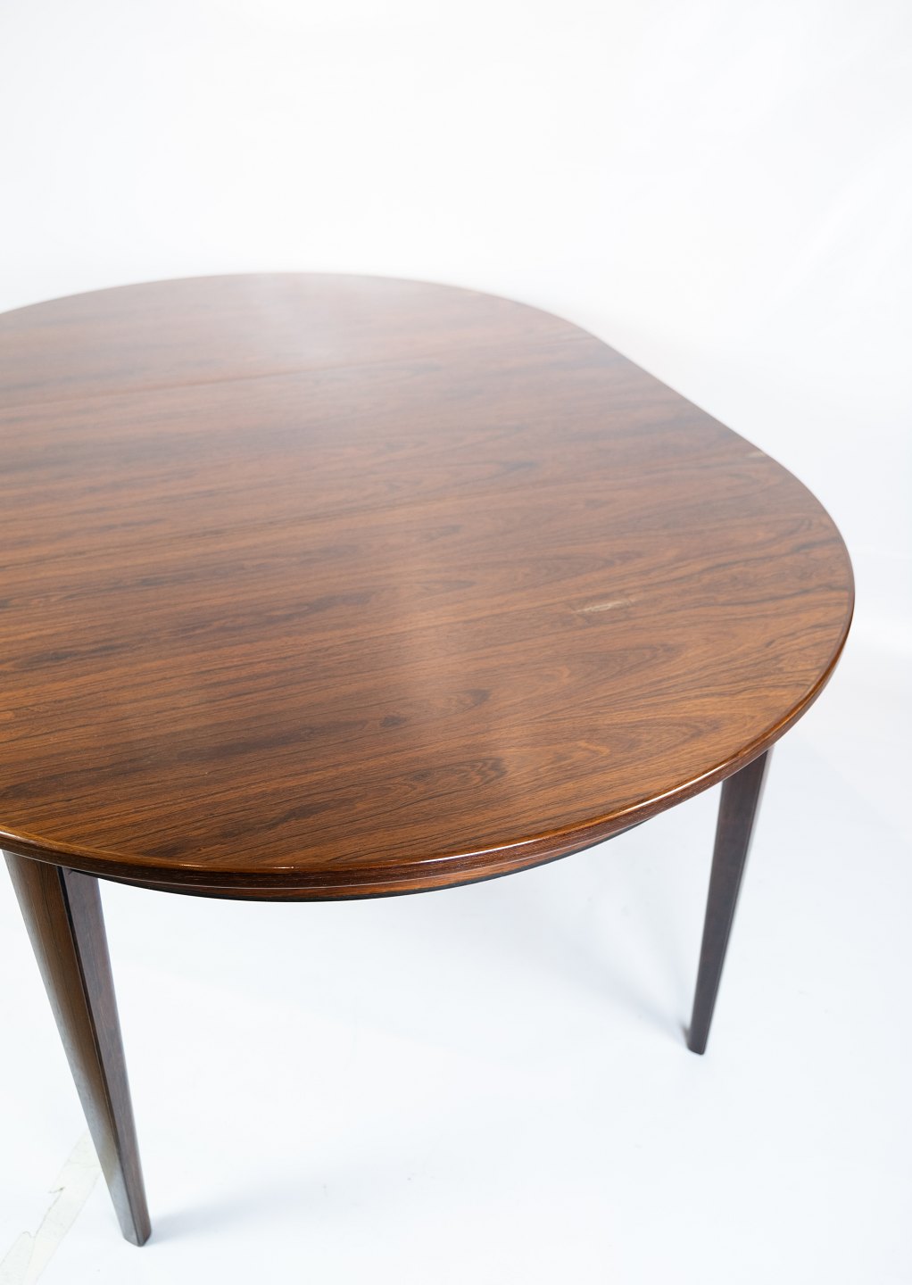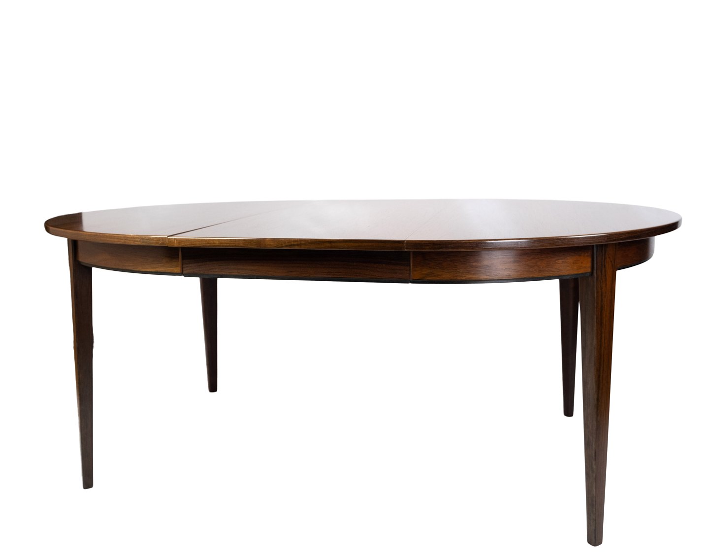 Spisebord i palisander, model 55, designet af Omann Junior fra 1960erne. Bordet er med tre udtræksplader og i flot brugt stand. '