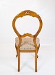 Sæt af seks Rokoko spisestuestole af lys mahogni og mønstret stof fra omkring år 1760. Stolene er i flot brugt stand.