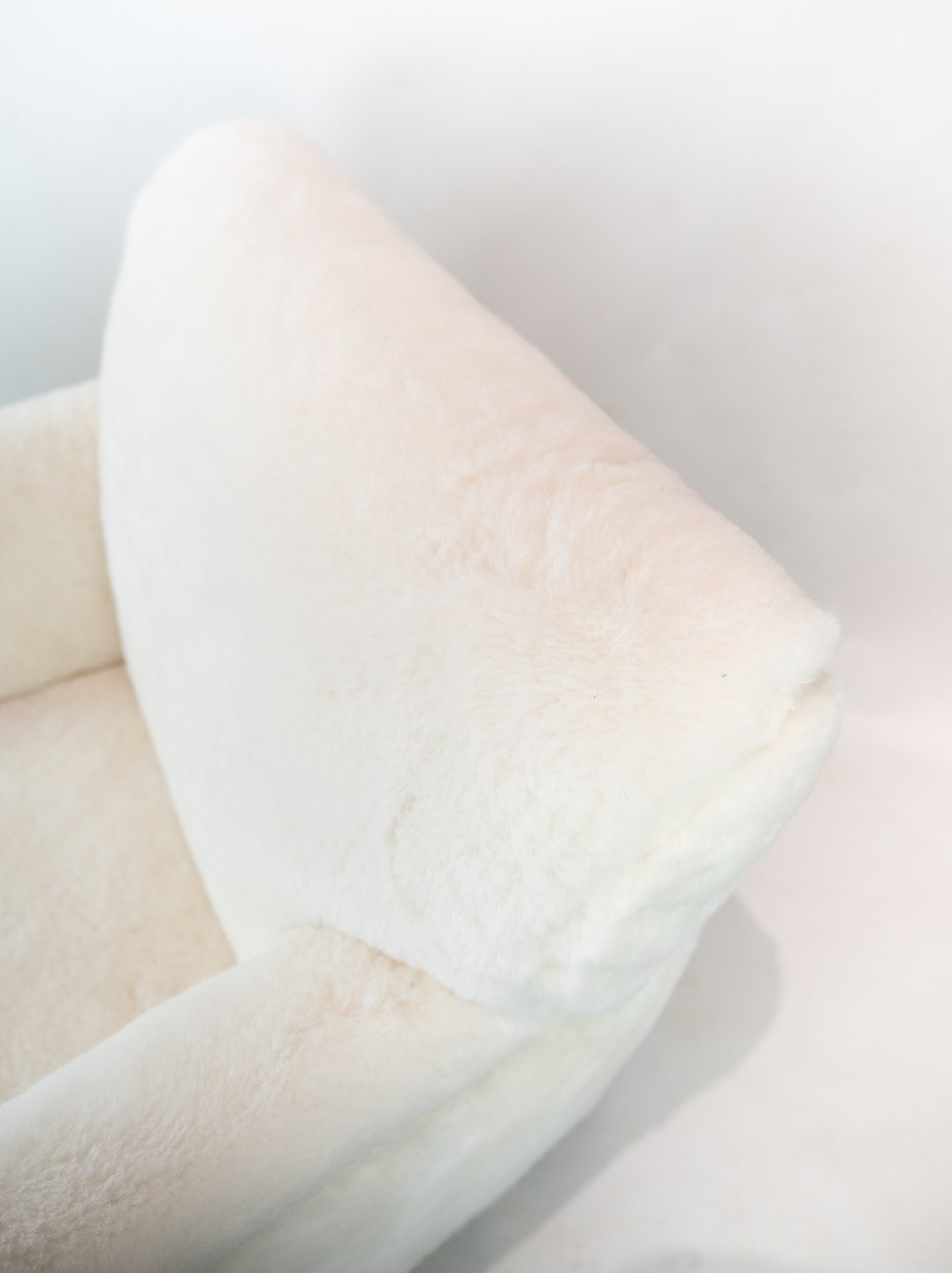 Please contact us for price informationThis charming armchair will add sophisticated elegance to any room. With its newly upholstered seat in soft sheep's wool and beautifully polished wooden legs, the chair offers both comfort and style. It is a timeless classic that perfectly blends traditional design with modern conveniences.