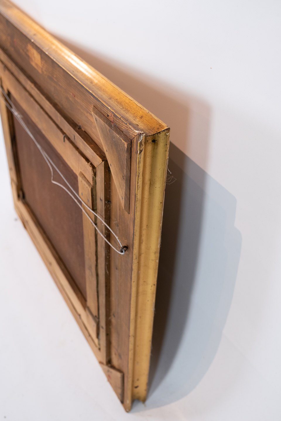 SoldOil painting with marine motif with gilded frame signed Carl Locher. The painting is in great vintage condition. Carl Locher was born in Flensburg in 1851 and died in Skagen in 1915.