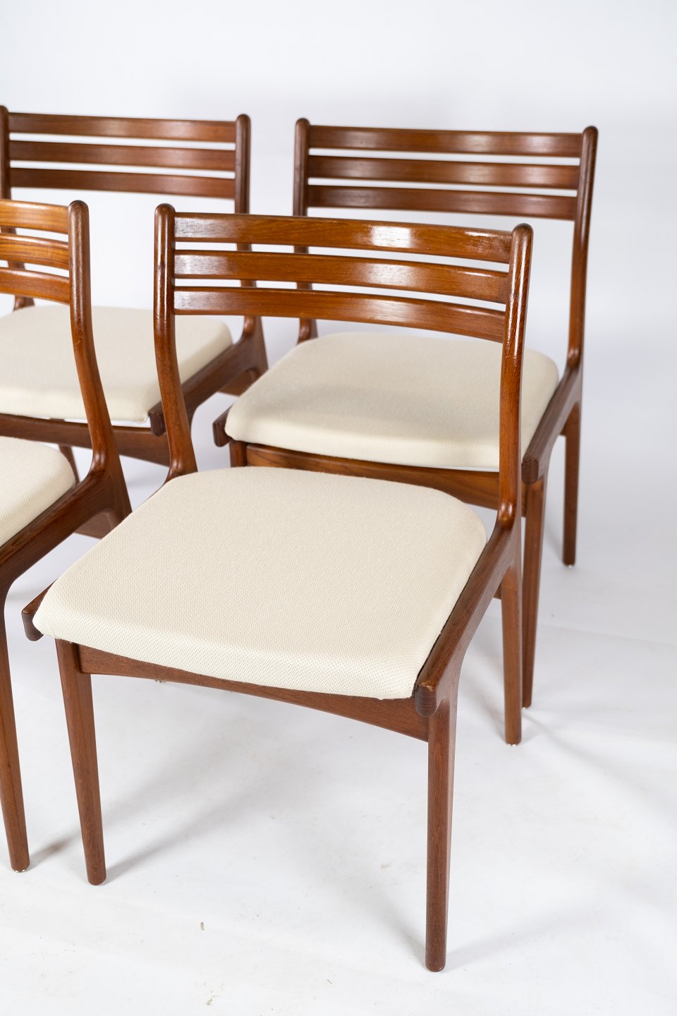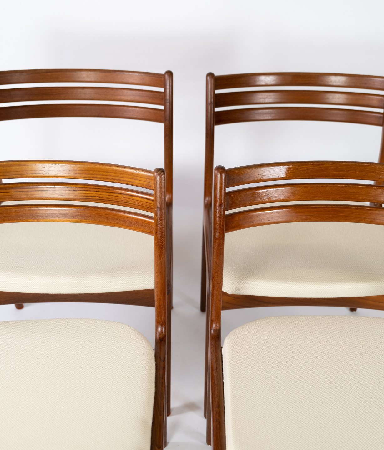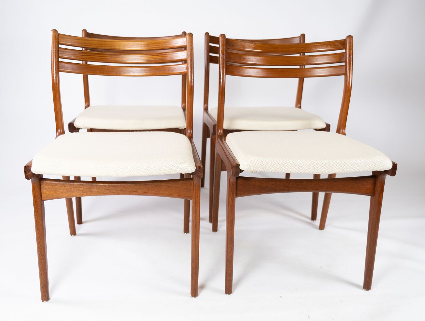 A Set Of Four Dining Room Chairs - Teak - Light Wool - Danish Design - 1960