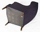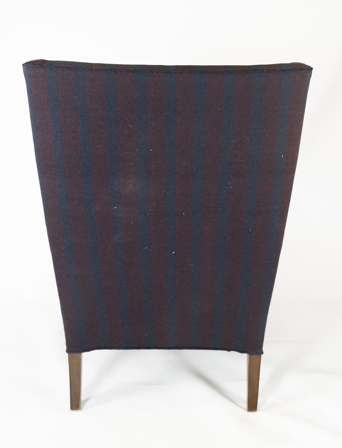 Høj lænestol med mørkt stribet stof, i flot brugt stand fra 1940erne.
