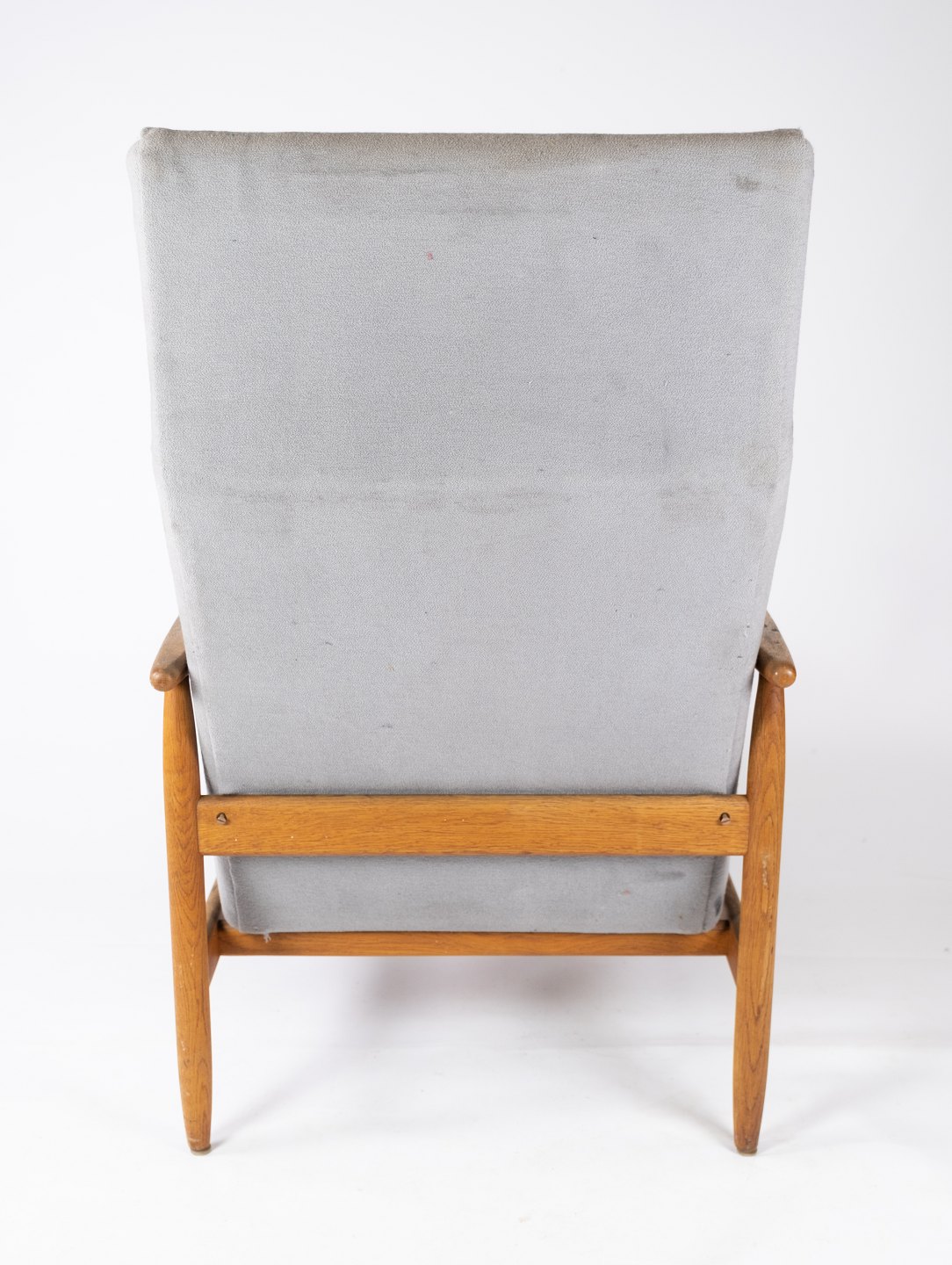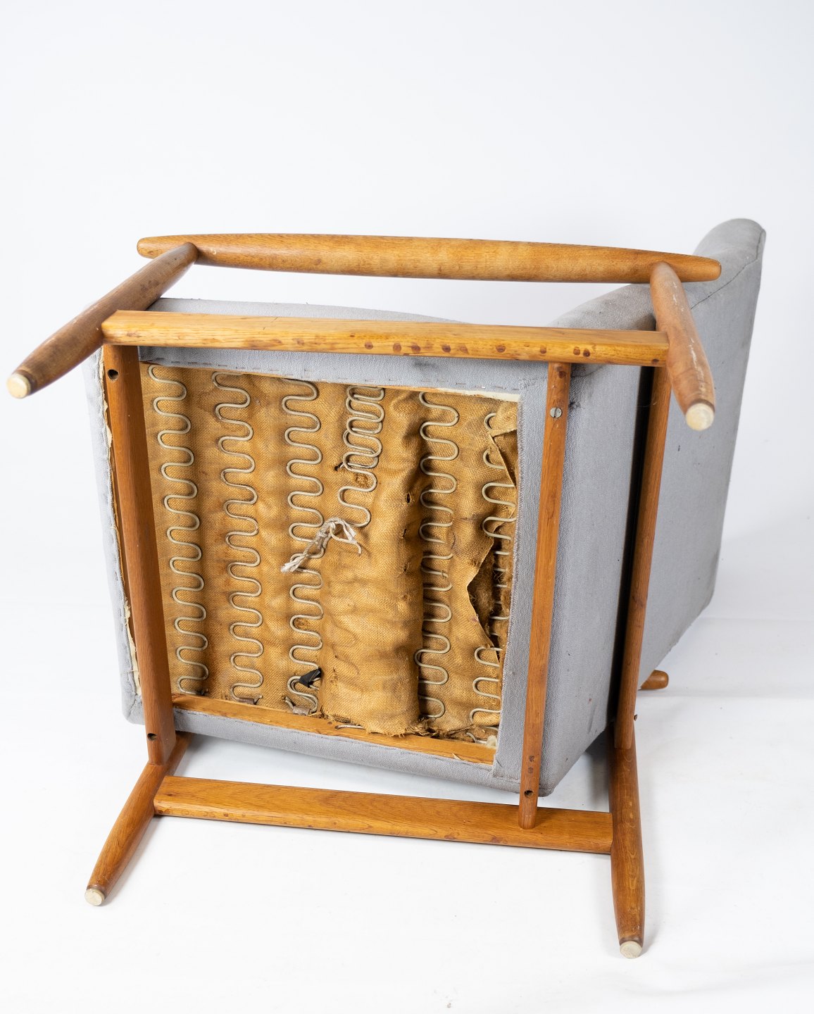 SoldEasy chair, model J65 in light wood and upholstered with grey wool fabric designed by Ejvind A Johansson for FDB.