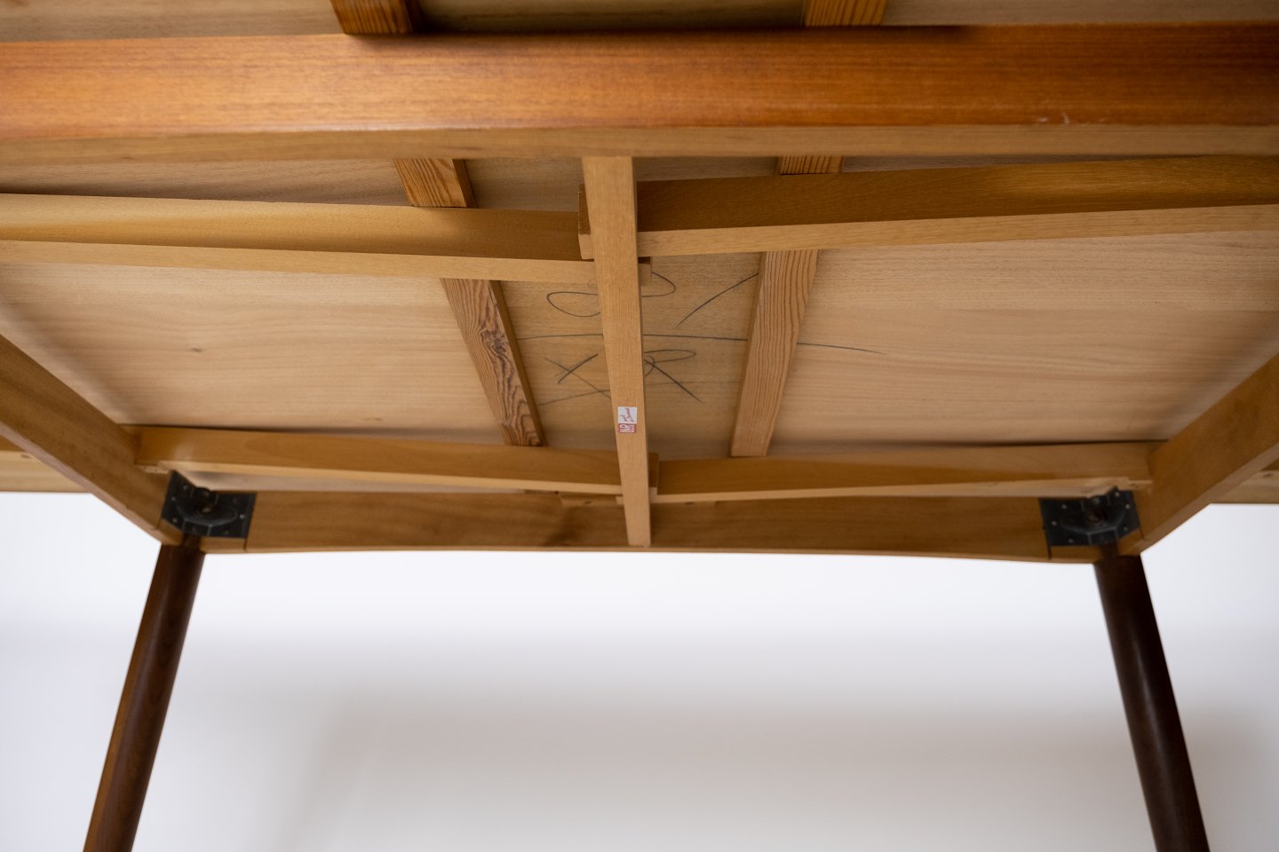 Spisebord i teak med hollandsk udtræk af dansk design fra 1960erne. Bordet er i flot brugt stand.