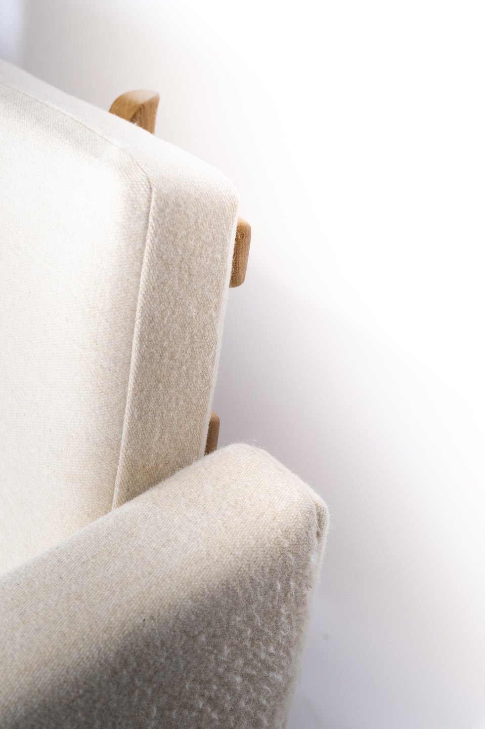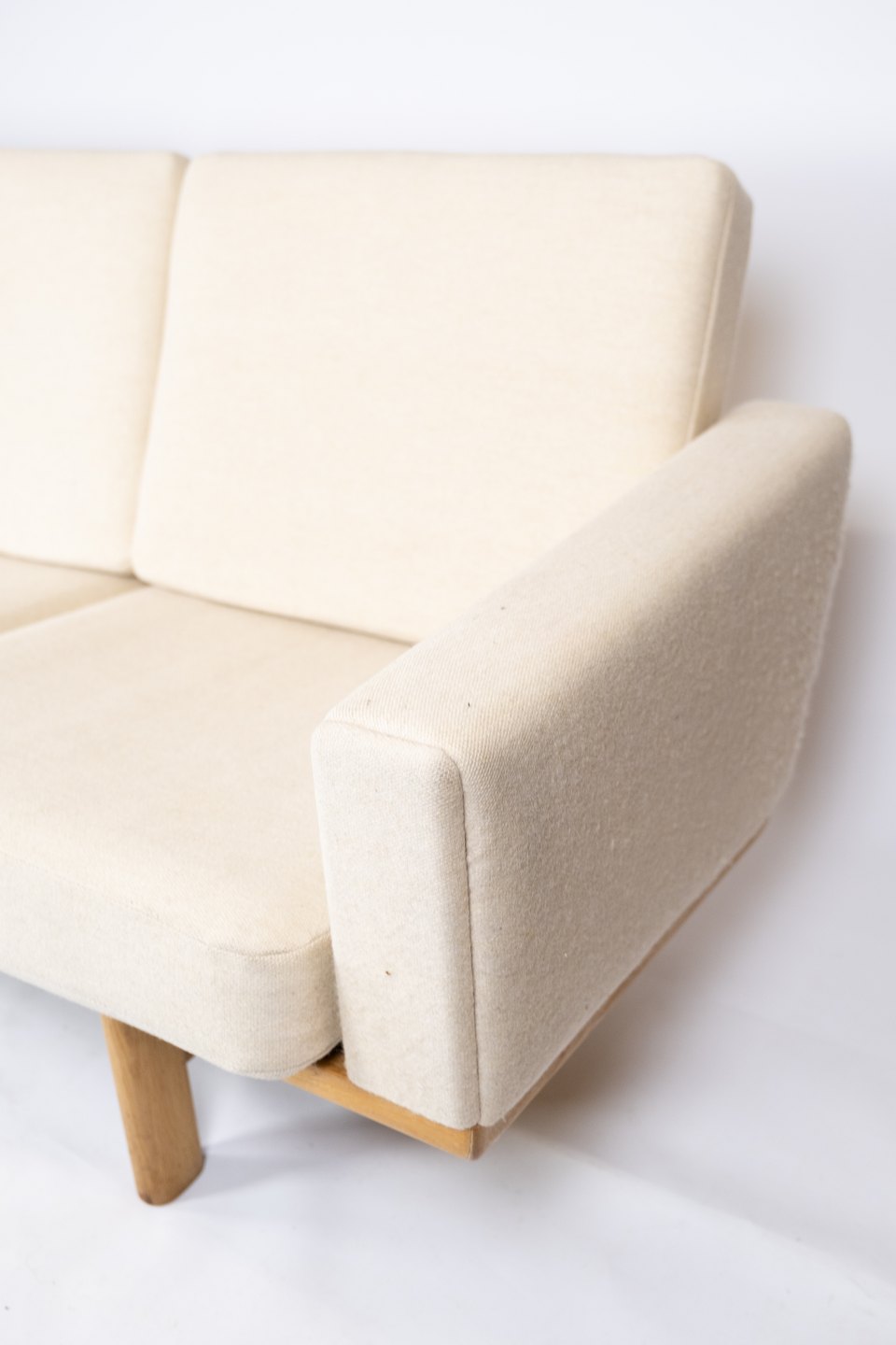 Three seater sofa, model GE-236/3, designed by Hans J. Wegner and manufactured by Getama in the 1960s. The sofa is upholstered with light wool fabric and of oak.