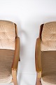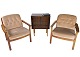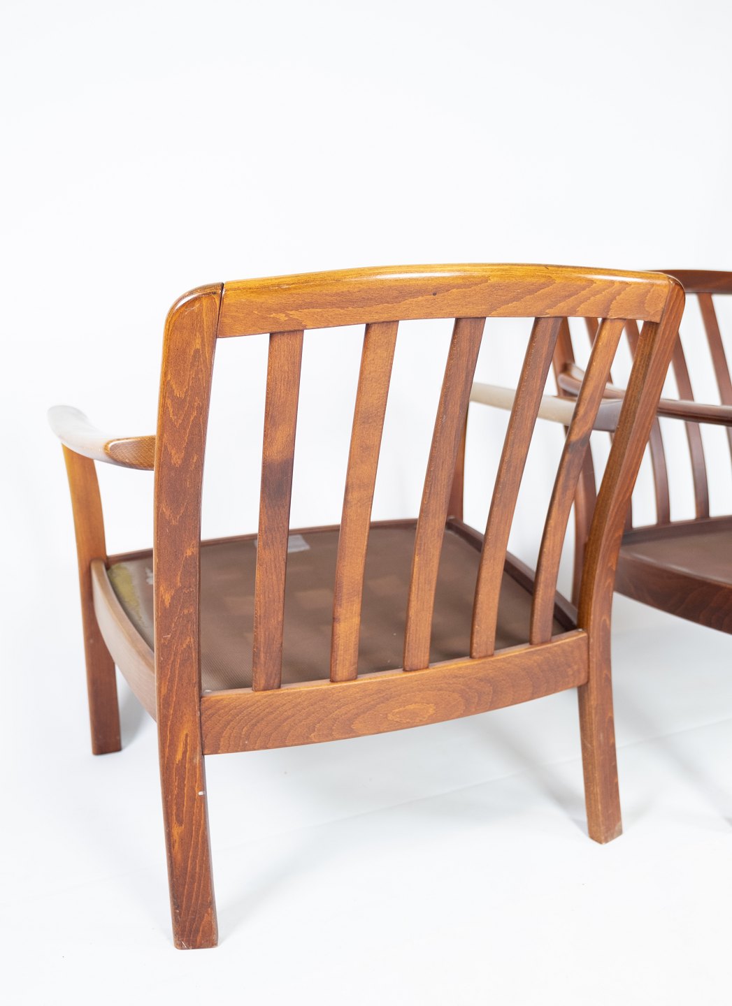 This set of Easy chairs in polished wood and cushions in velor, from the 1960s, is a beautiful expression of Danish craftsmanship and aesthetics. With their elegant design and luxurious upholstery, these chairs are both comfortable and stylish.