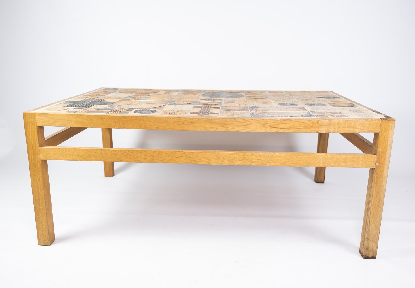 Coffee table in oak and with different tiles, designed by Tue Poulsen from the 1970s. The table is in great vintage condition.