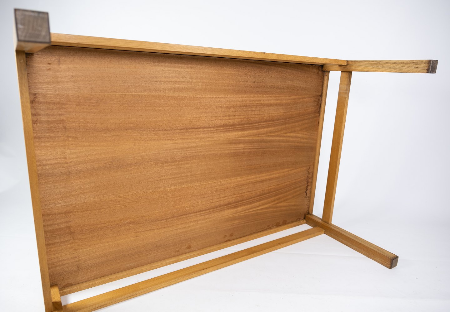 Coffee table in oak and with different tiles, designed by Tue Poulsen from the 1970s.
