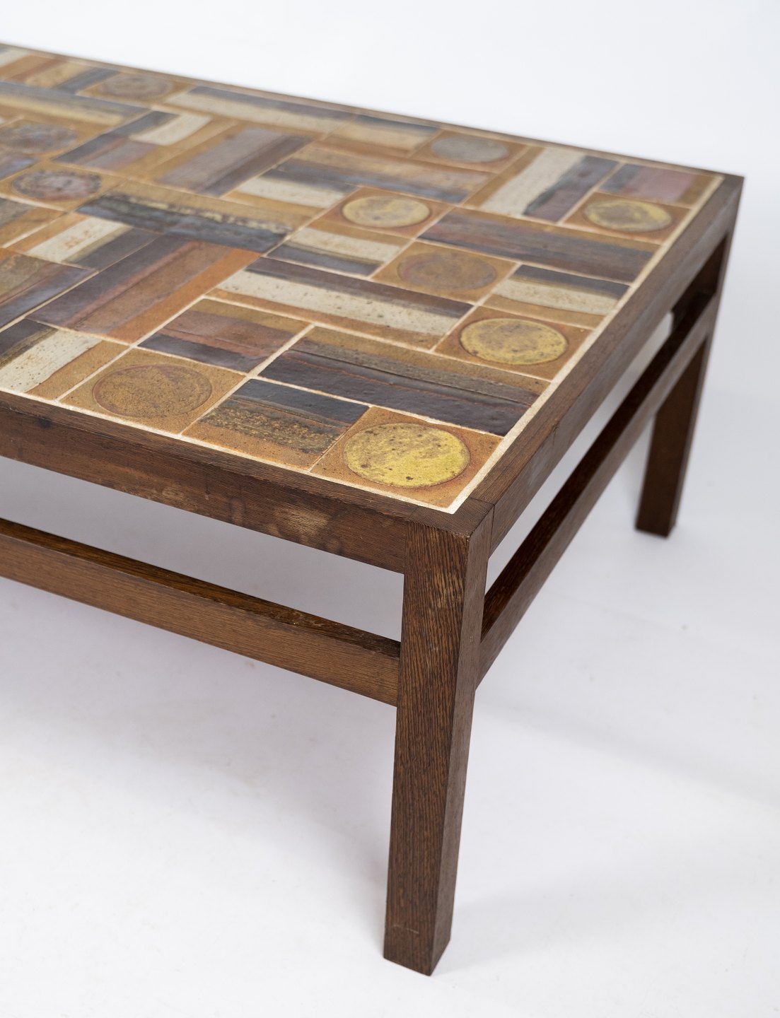 SoldCoffee table in rosewood and dark tiles, designed by Tue Poulsen from the 1970s. The table is in great vintage condition.