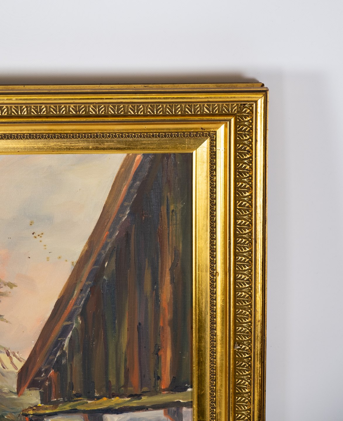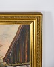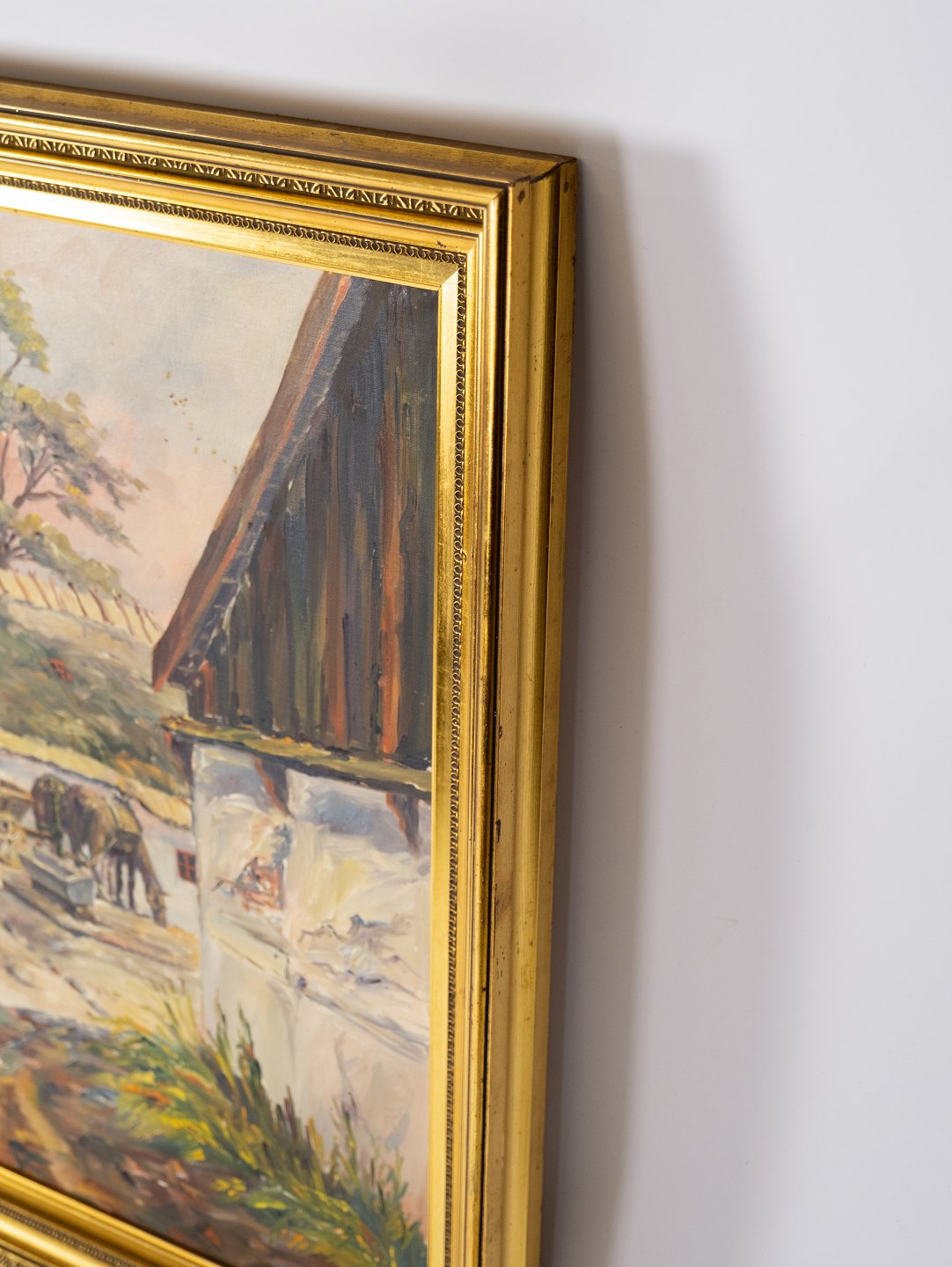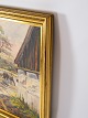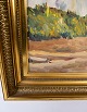 Oliemaleri med land motiv med guldramme signeret P.C.