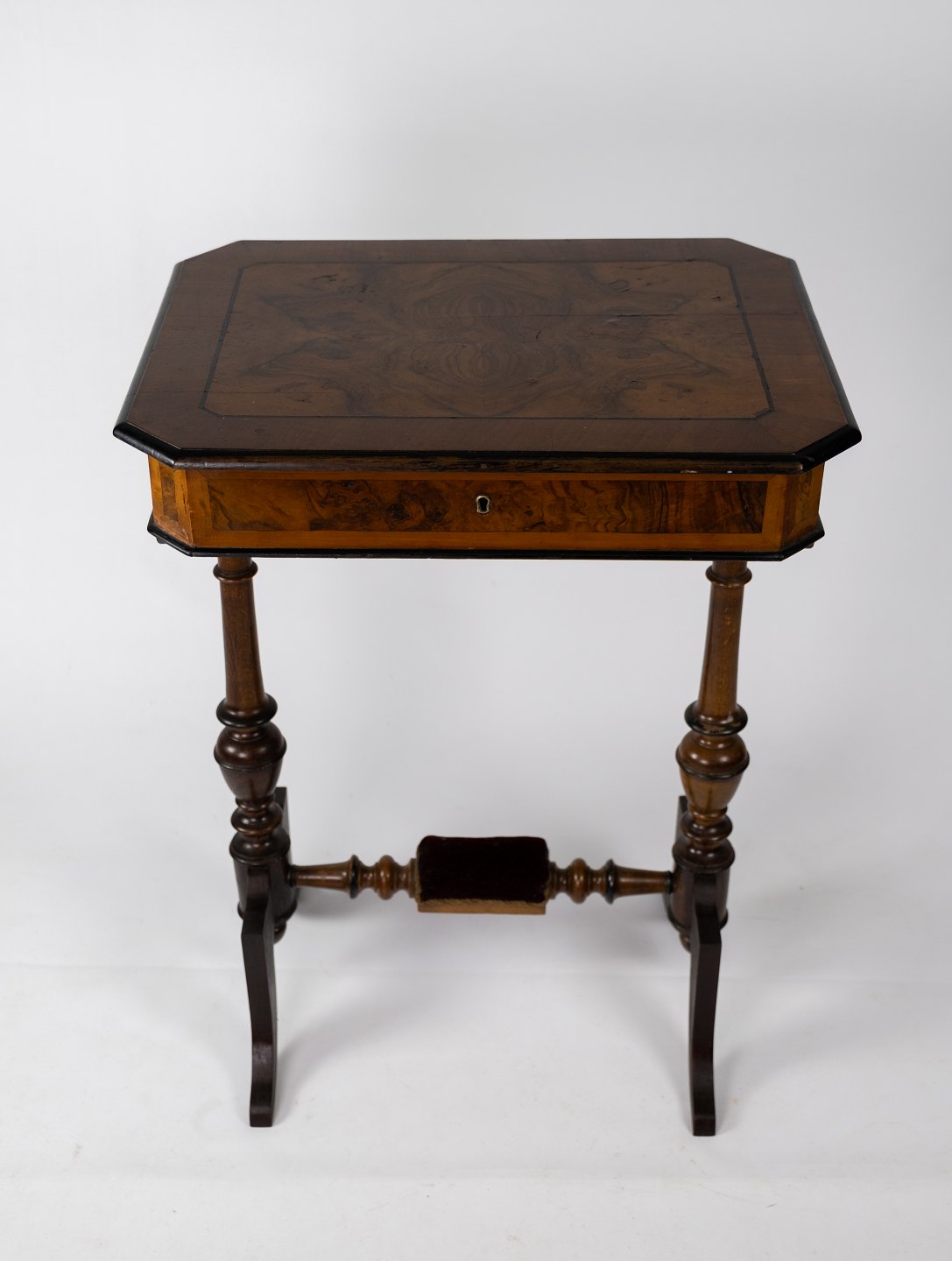 Sewing table of walnut, in great antique condition from the 1860s.