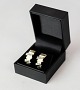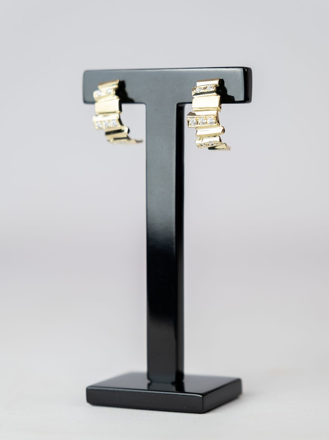 Set of earrings of 14 carat gold decorated with clear stones.