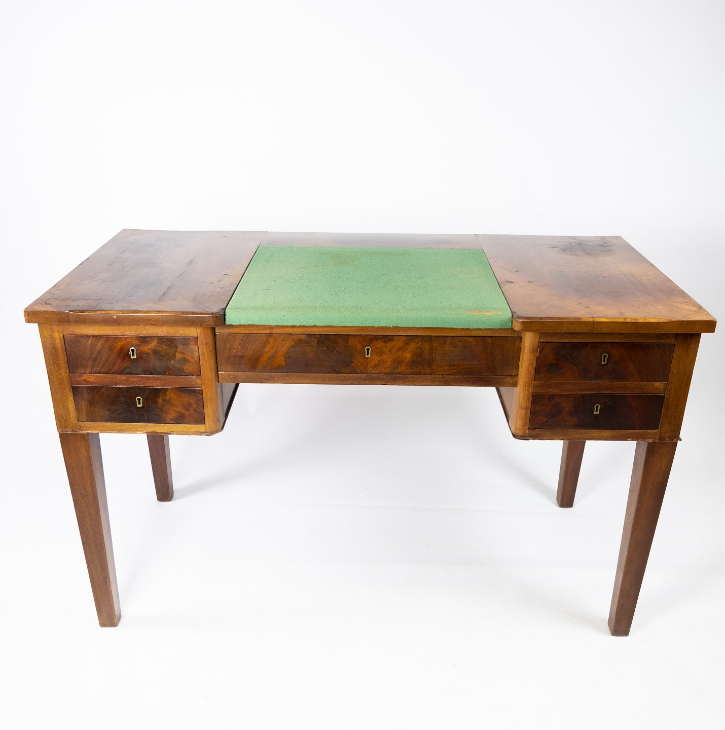 Desk in mahogany with green felt top, and in great antique condition from the 1890s.