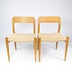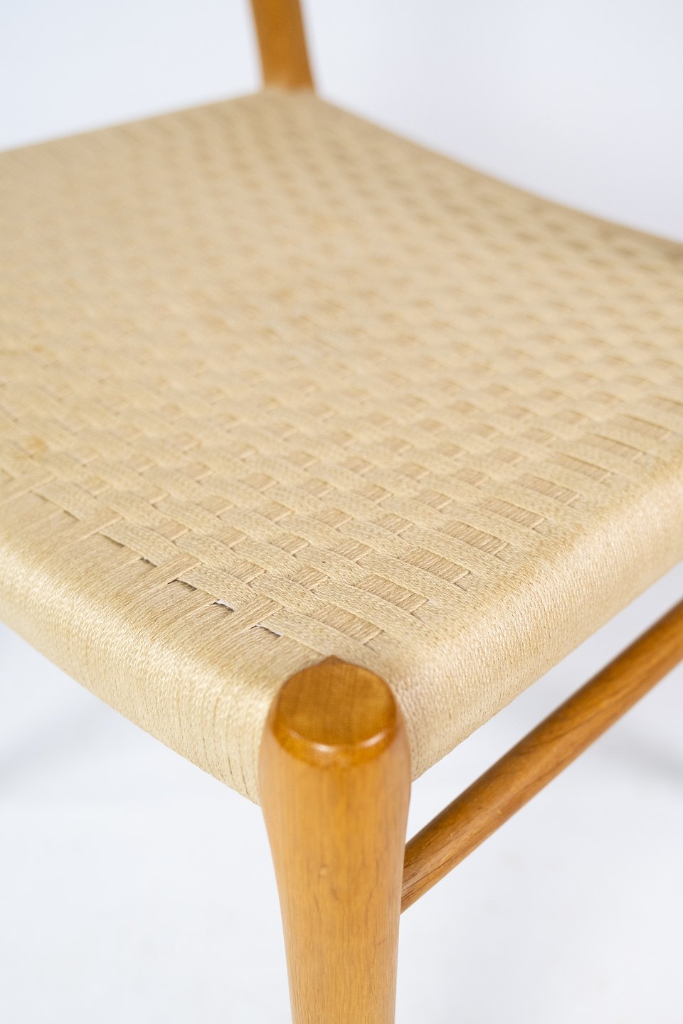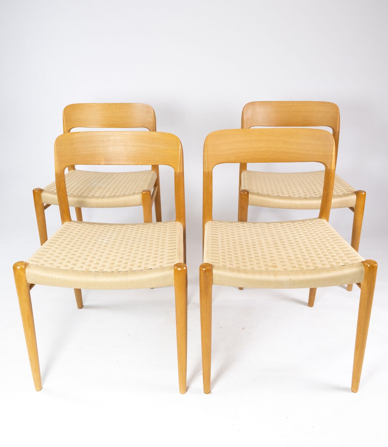 A Set Of Four Dining Chairs - Model 75 - Light Oak - Paper Wicker - N.O. Moller - 1960