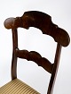 A set of dining room chairs of mahogany and upholstered with striped fabric from the 1860s.